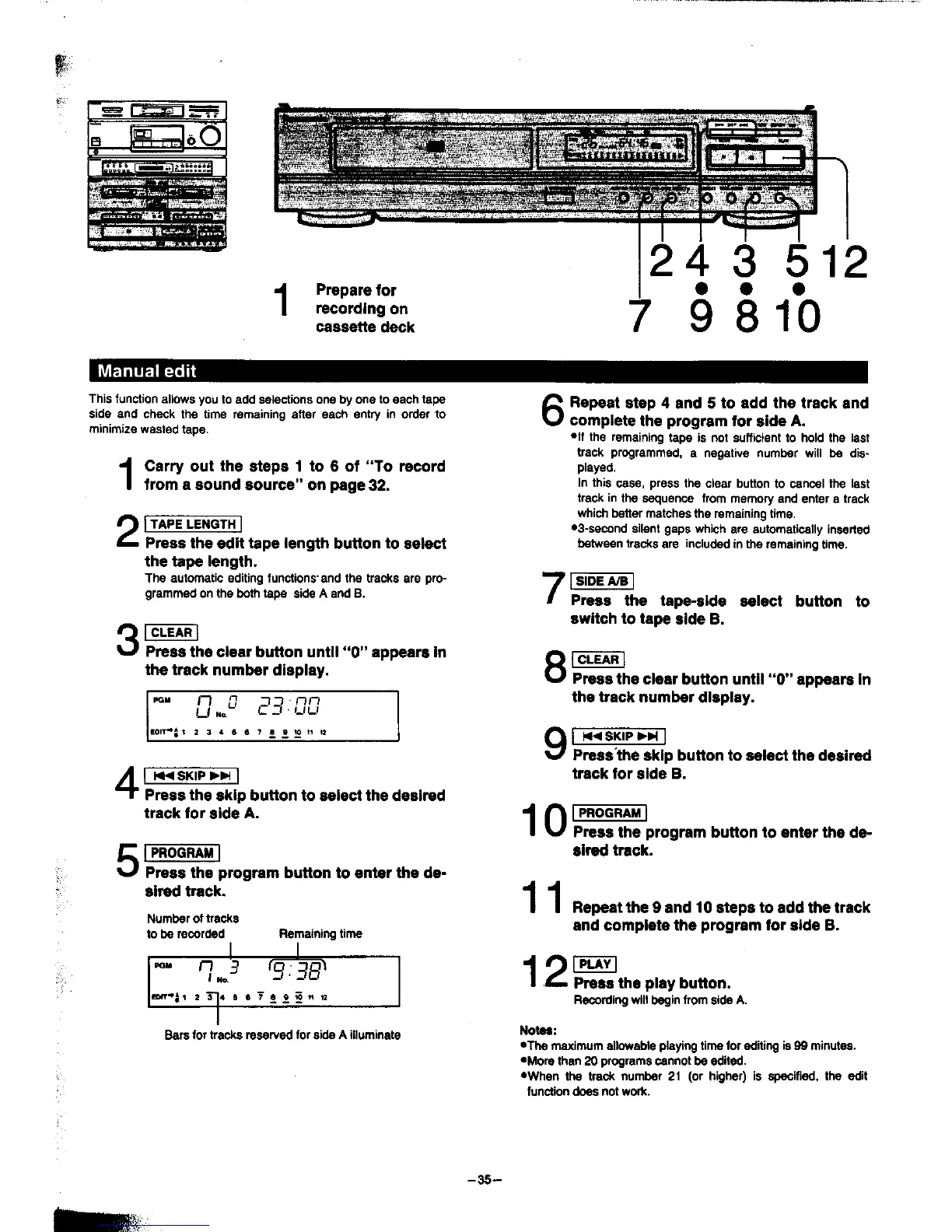 Panasonic SA-HD52 - Manual CD to Tape Editing; Step-by-Step Manual Track Entry; Completing Tape Side Programs