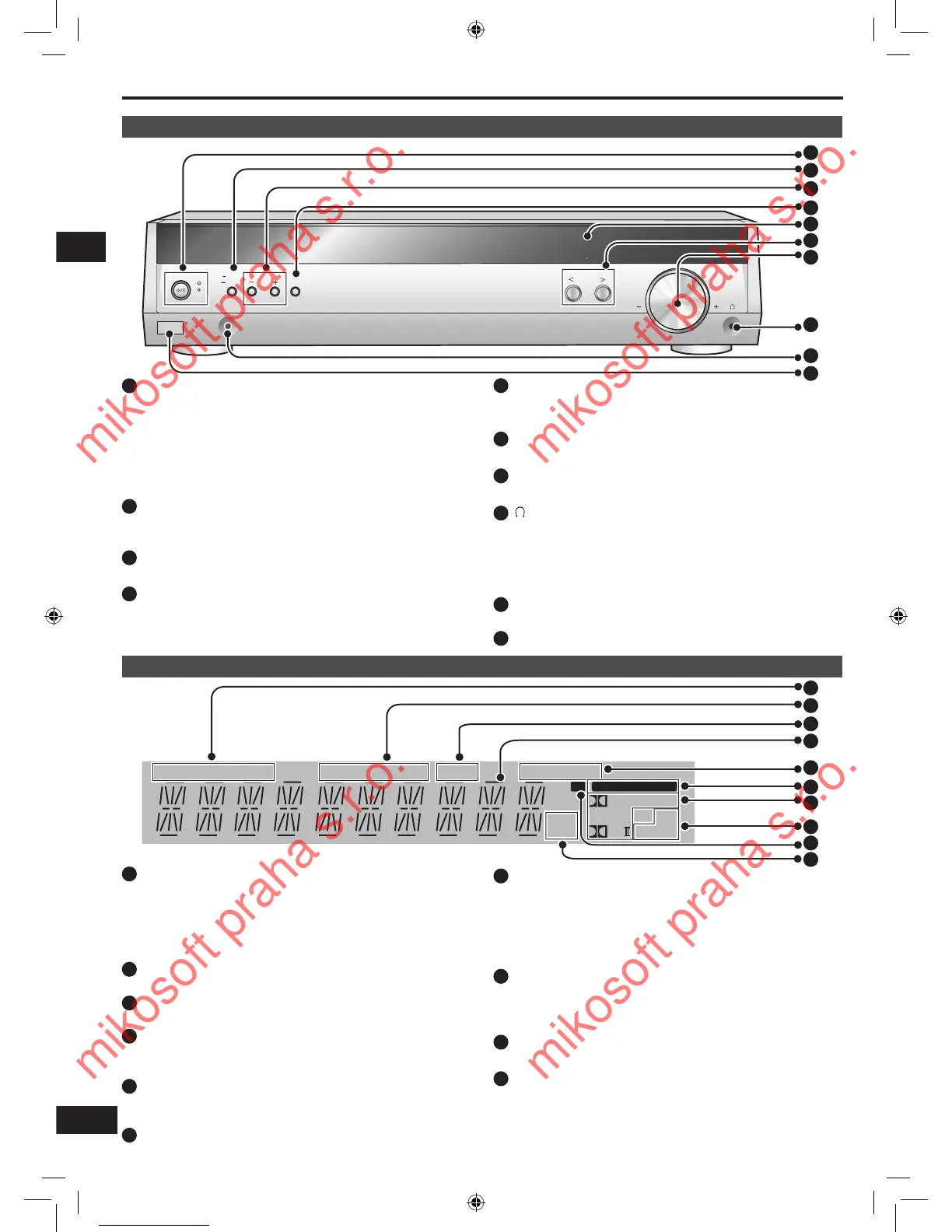 Zobrazuje vstupní režim, rádiovou frekvenci a další obecné