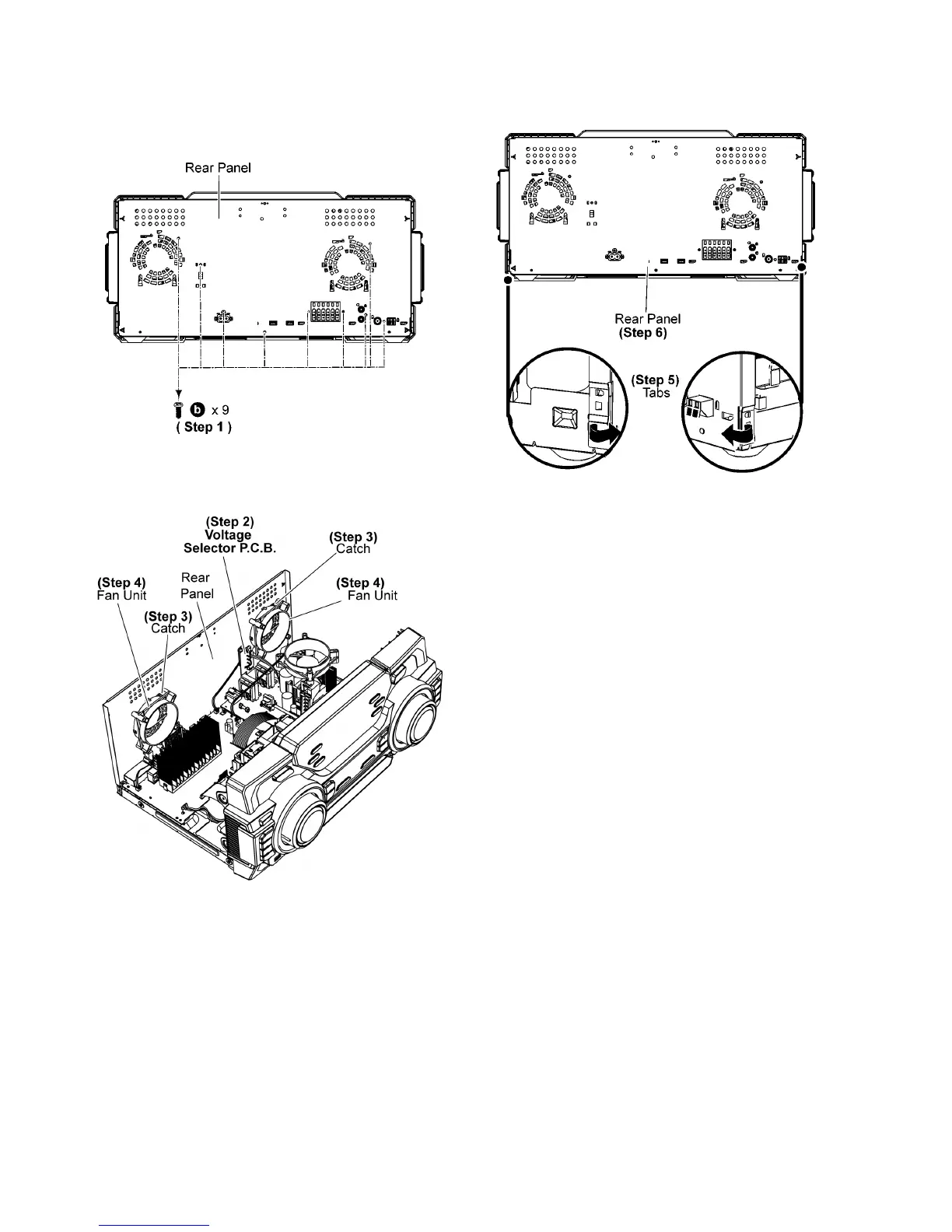 Step 2 Detach the Voltage Selector P.C.B. from Rear Panel.