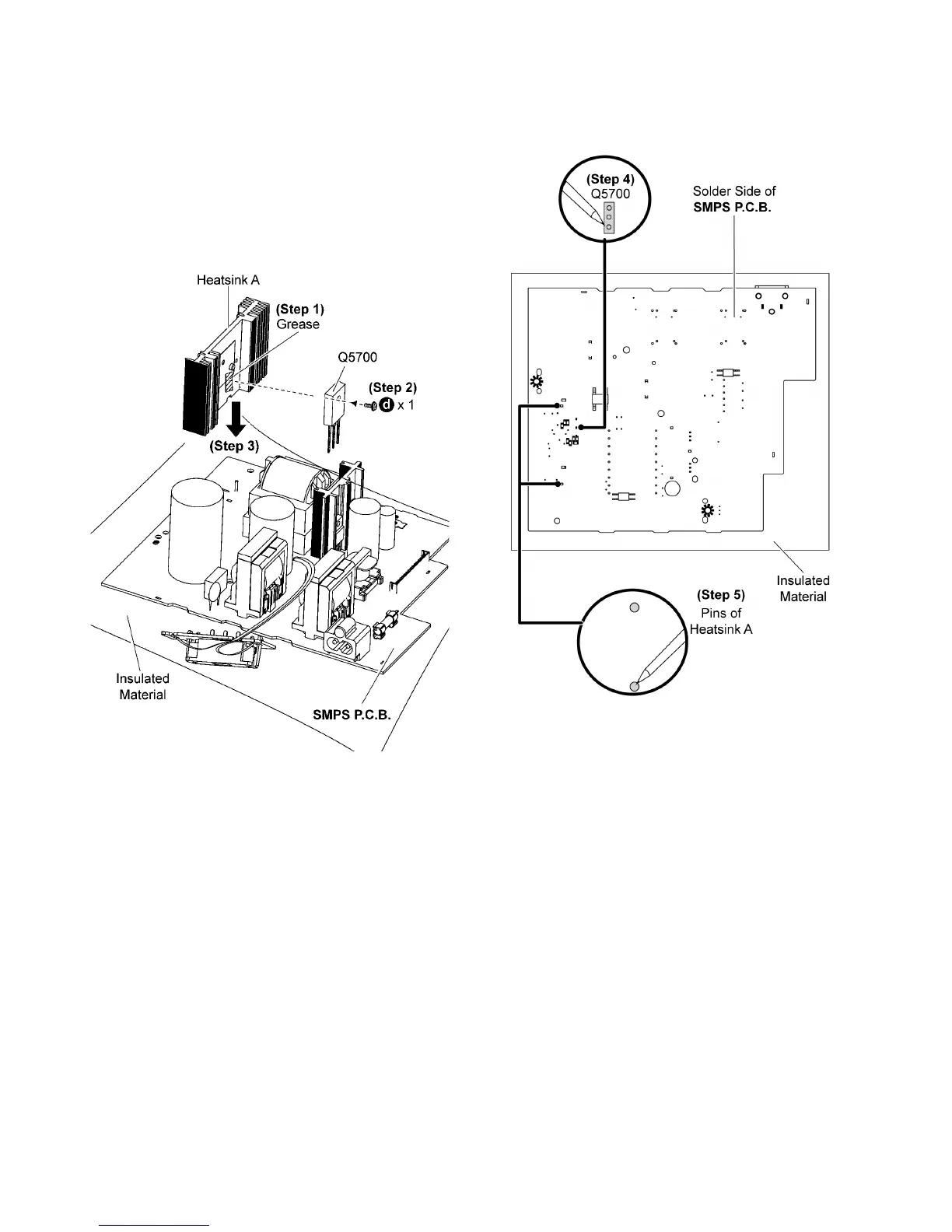 lator (Q5700) are properly inserted into the SMPS P.C.B..