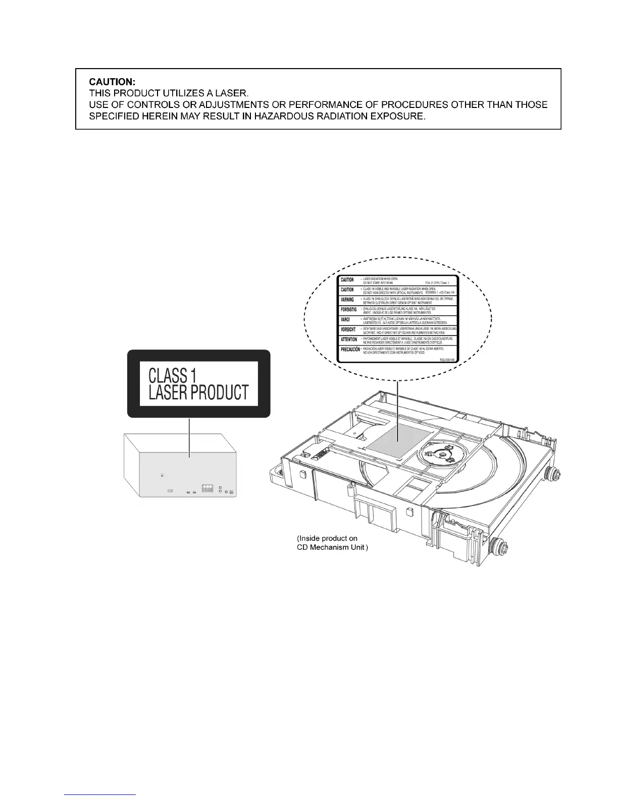 This product utilizes a laser diode with the unit turned “on”, invisible laser radiation is emitted from the pickup lens.
