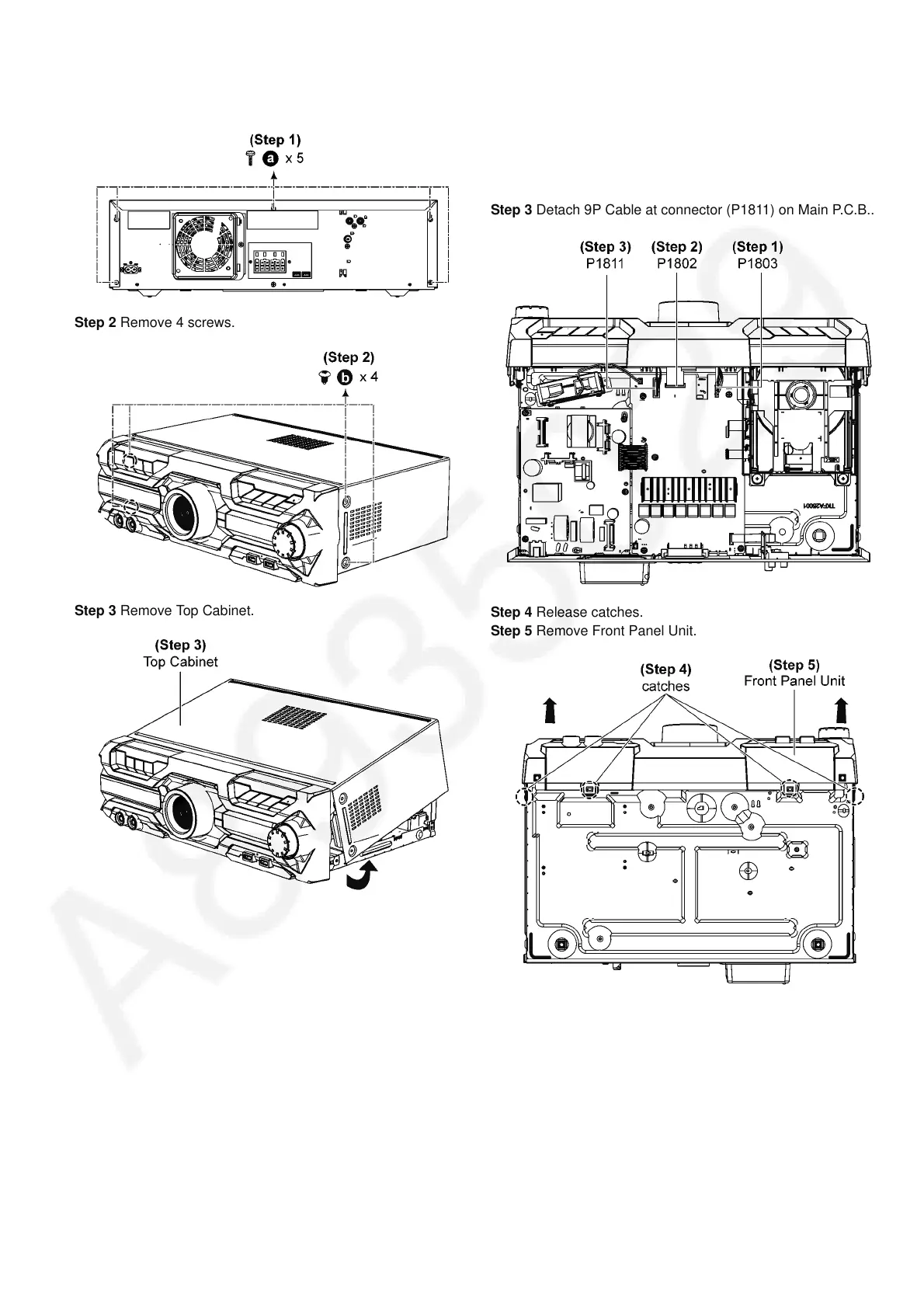 Step 3 Detach 9P Cable at connector (P1811) on Main P.C.B..