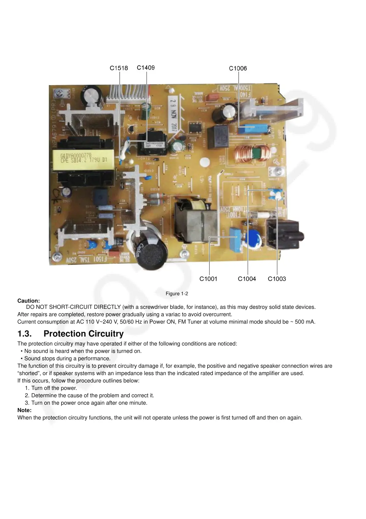 When the protection circuitry functions, the unit will not operate unless the power is first turned off and then on again.