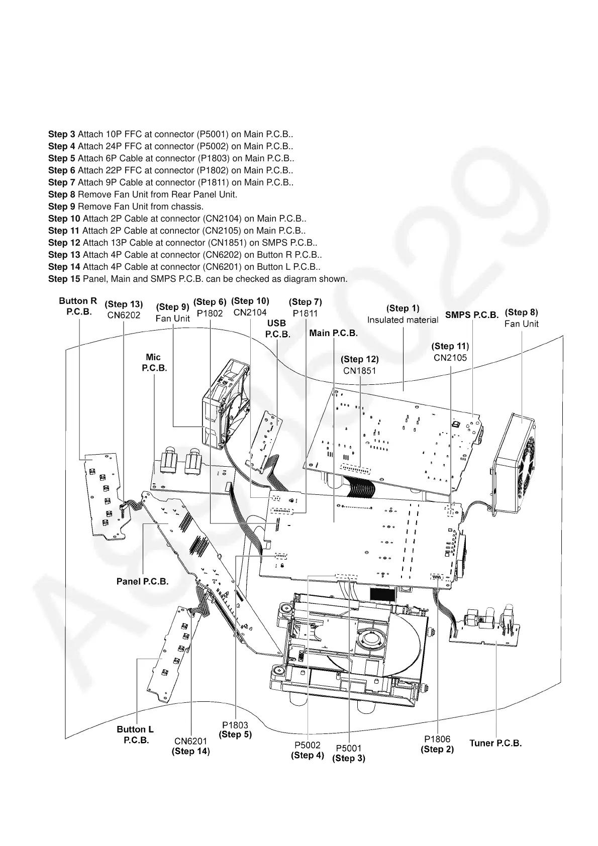 Step 15 Panel, Main and SMPS P.C.B. can be checked as diagram shown.