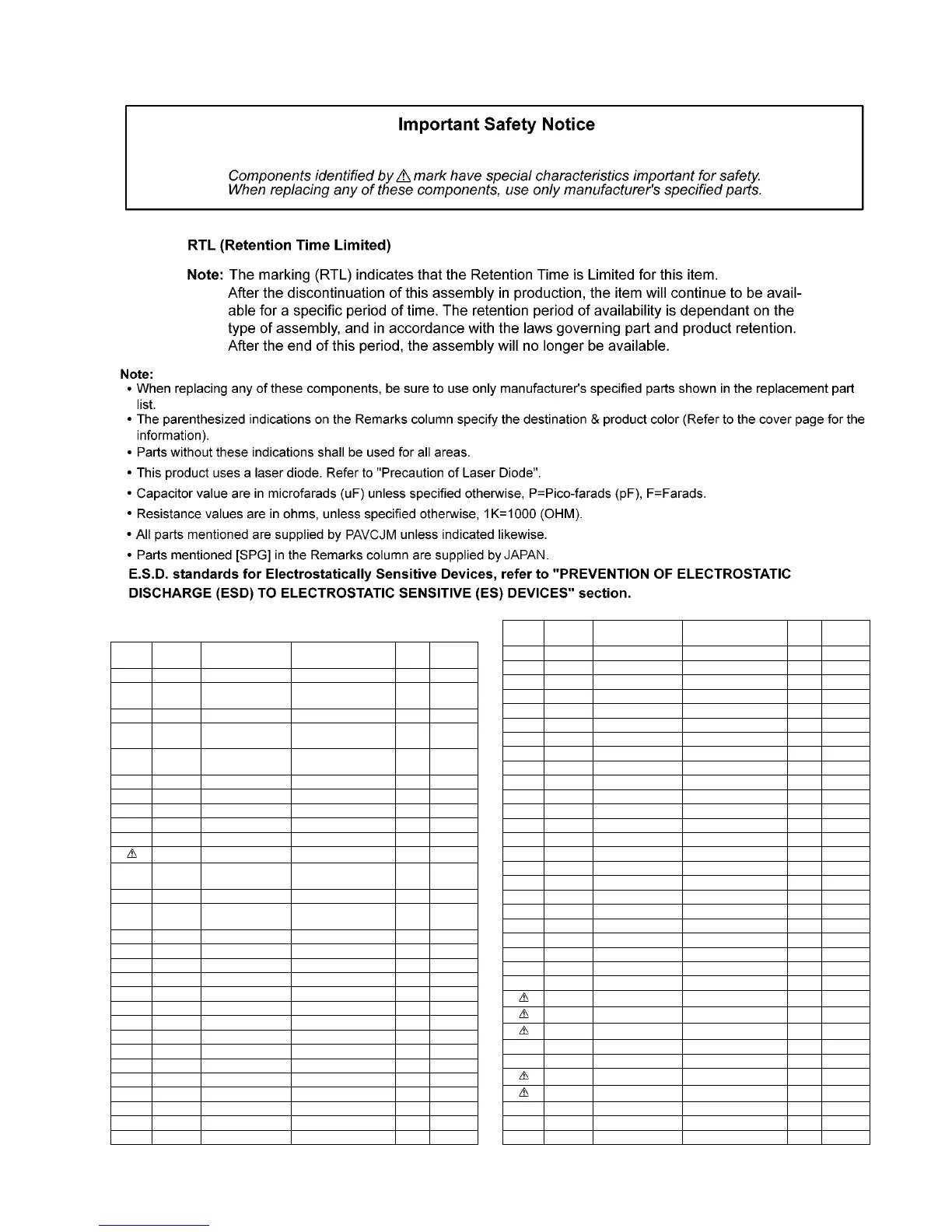 15.6. Electrical Replacement Part List