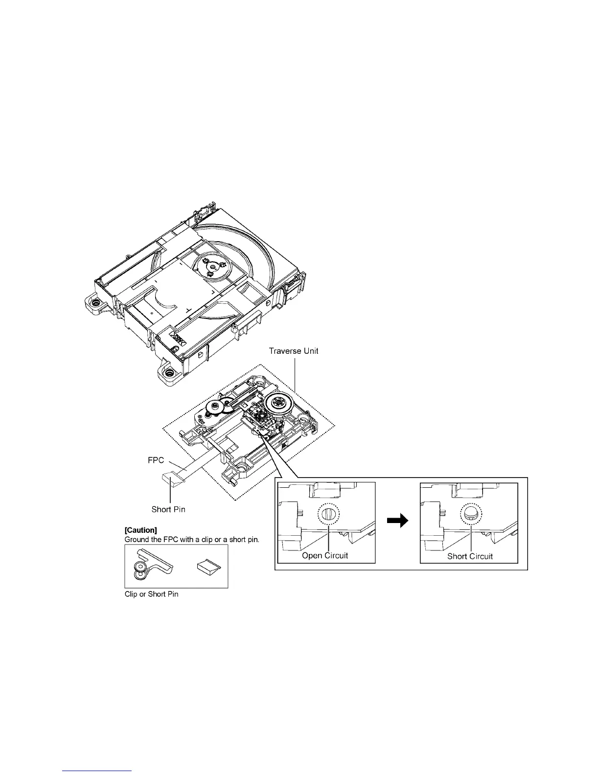 2. To prevent the laser diode from the electrostatic discharge damage, the flexible cable of the optical pickup unit removed