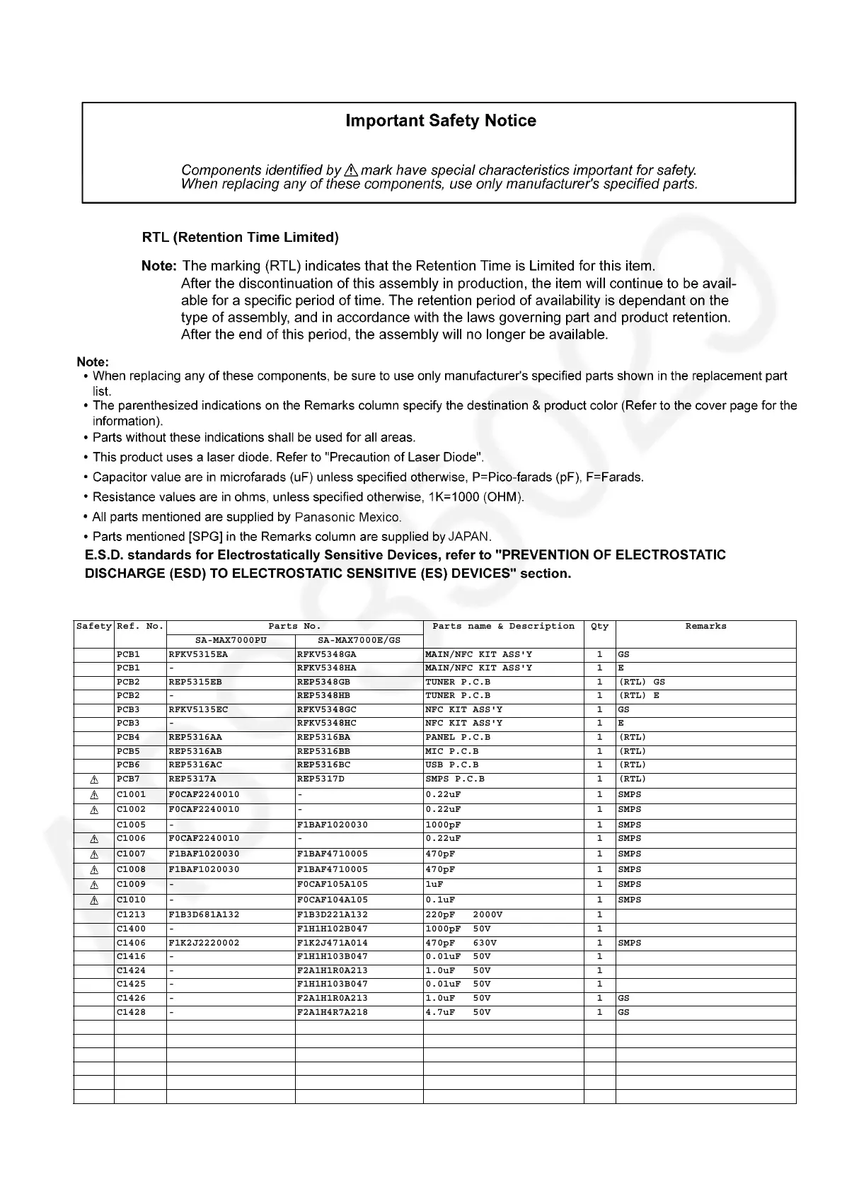 Safety Ref. No. Parts No. Parts name & Description Qty Remarks