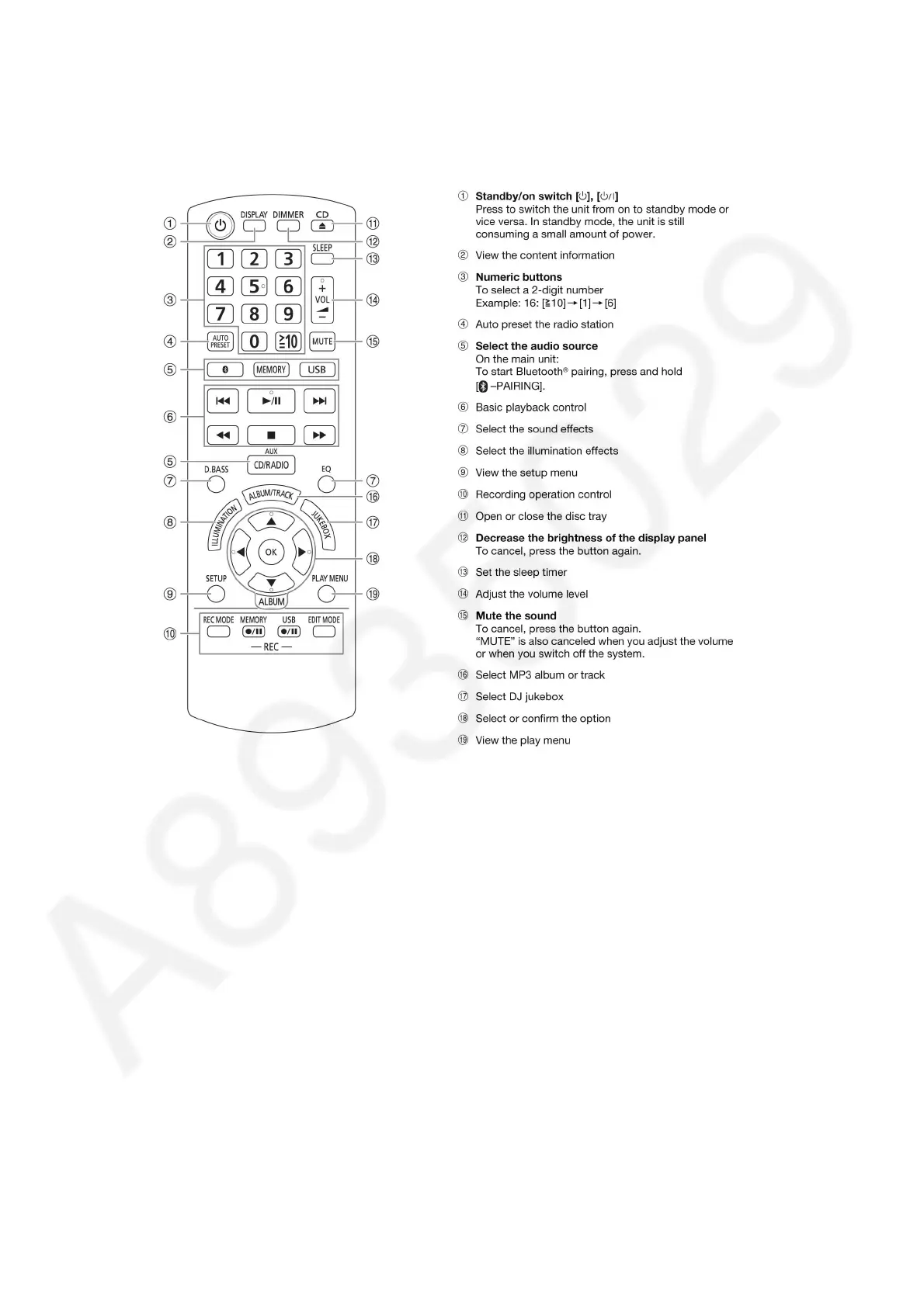 Panasonic SA-MAX7000PU - Location of Controls and Components; Remote Control Key Button Operation
