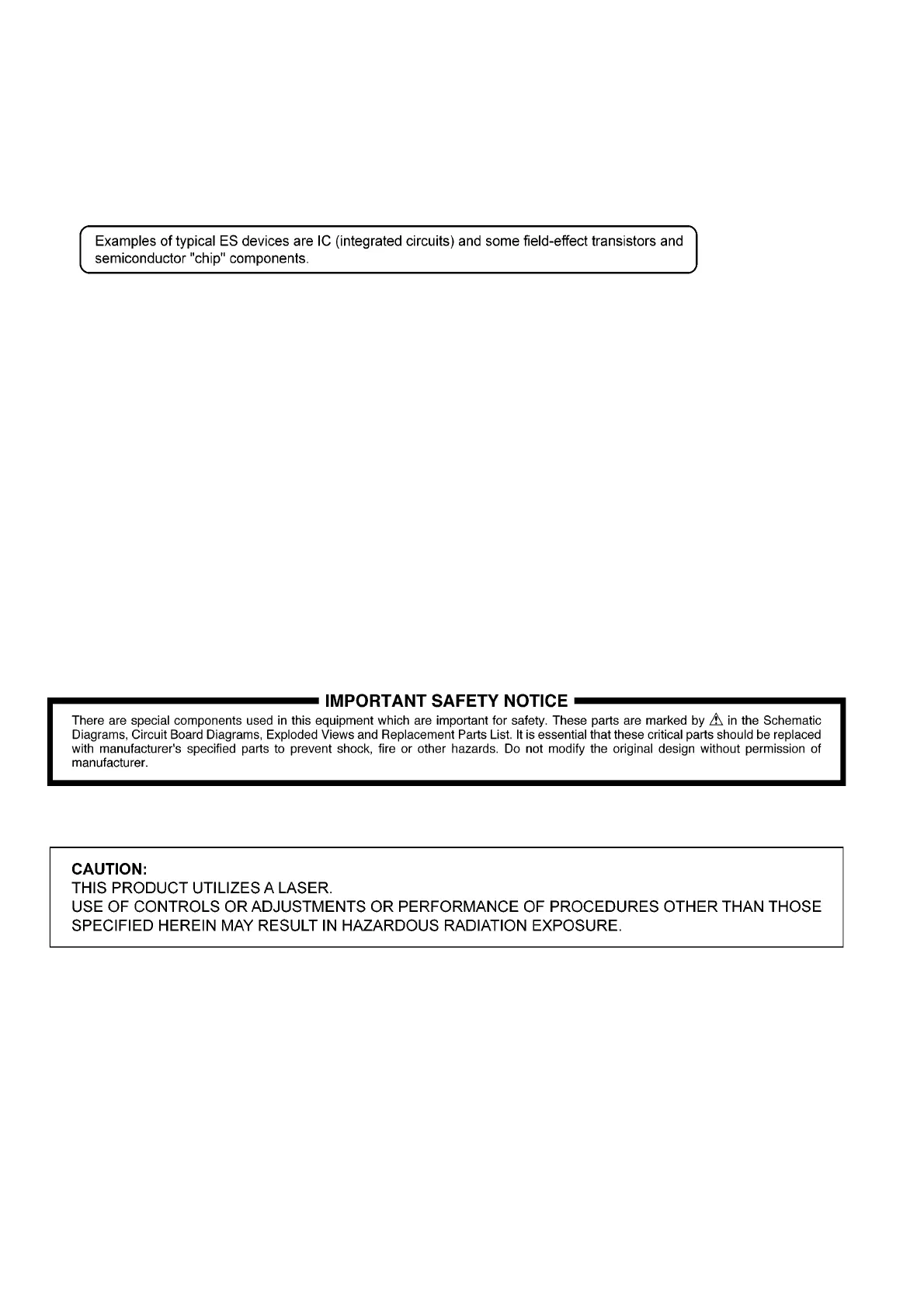 1. Do not disassemble the pickup unit, since radiation from exposed laser diode is dangerous.