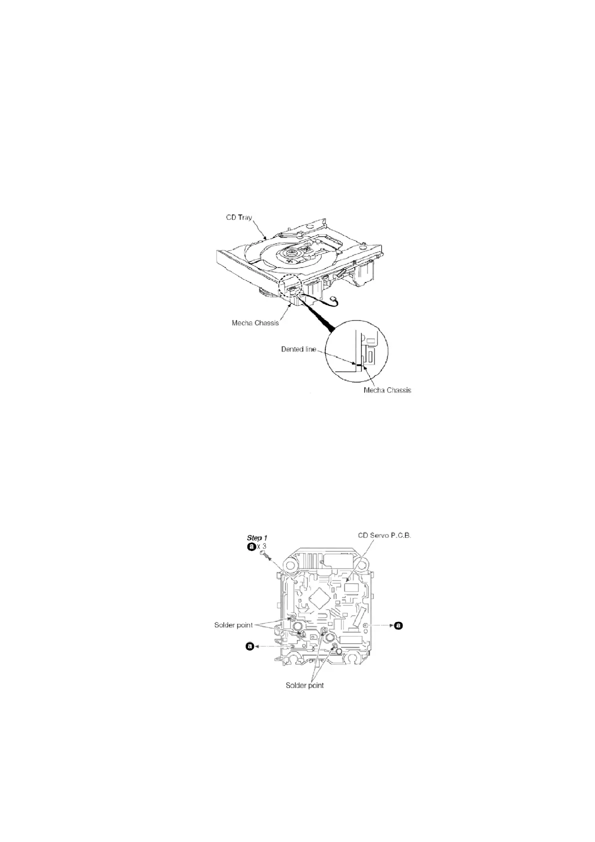 NOTE: When replacing the CD Tray, make sure the Dented line is at the position as shown.