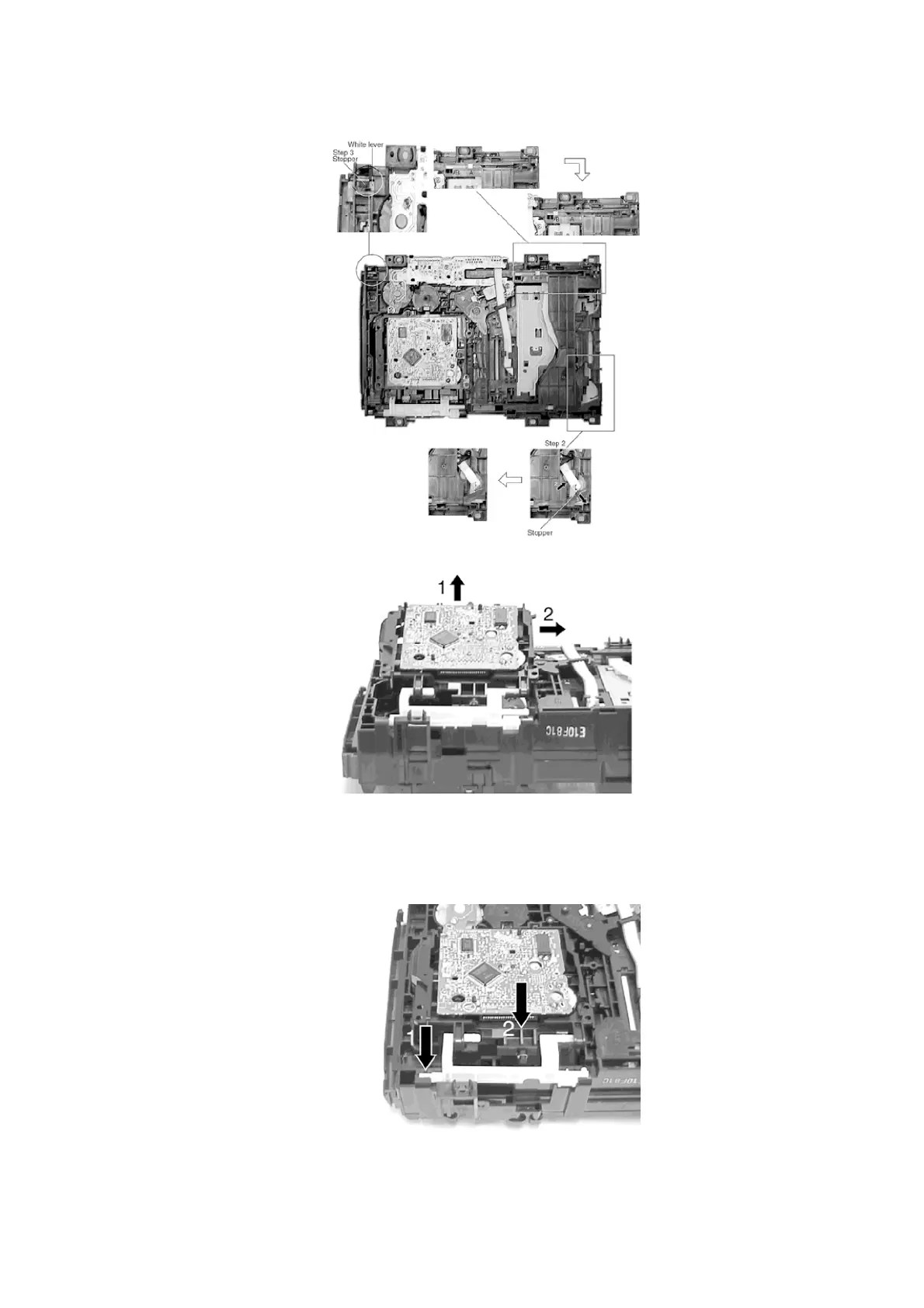 Step 3 Pull the stopper in the direction of arrow 1 and release the lever in the direction of arrow 2