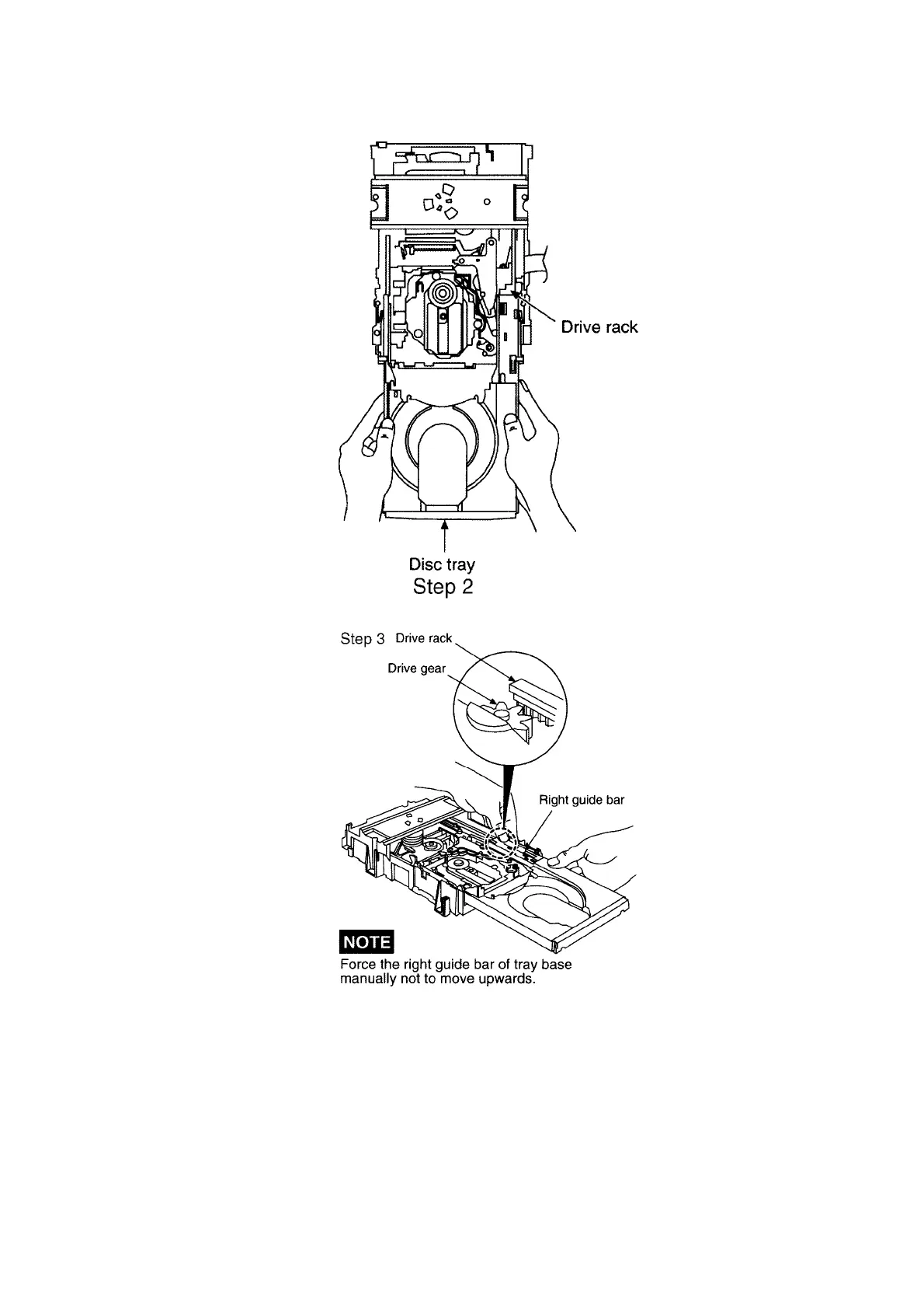 Step 2 Holding the drive rack not to move, install the disc tray.