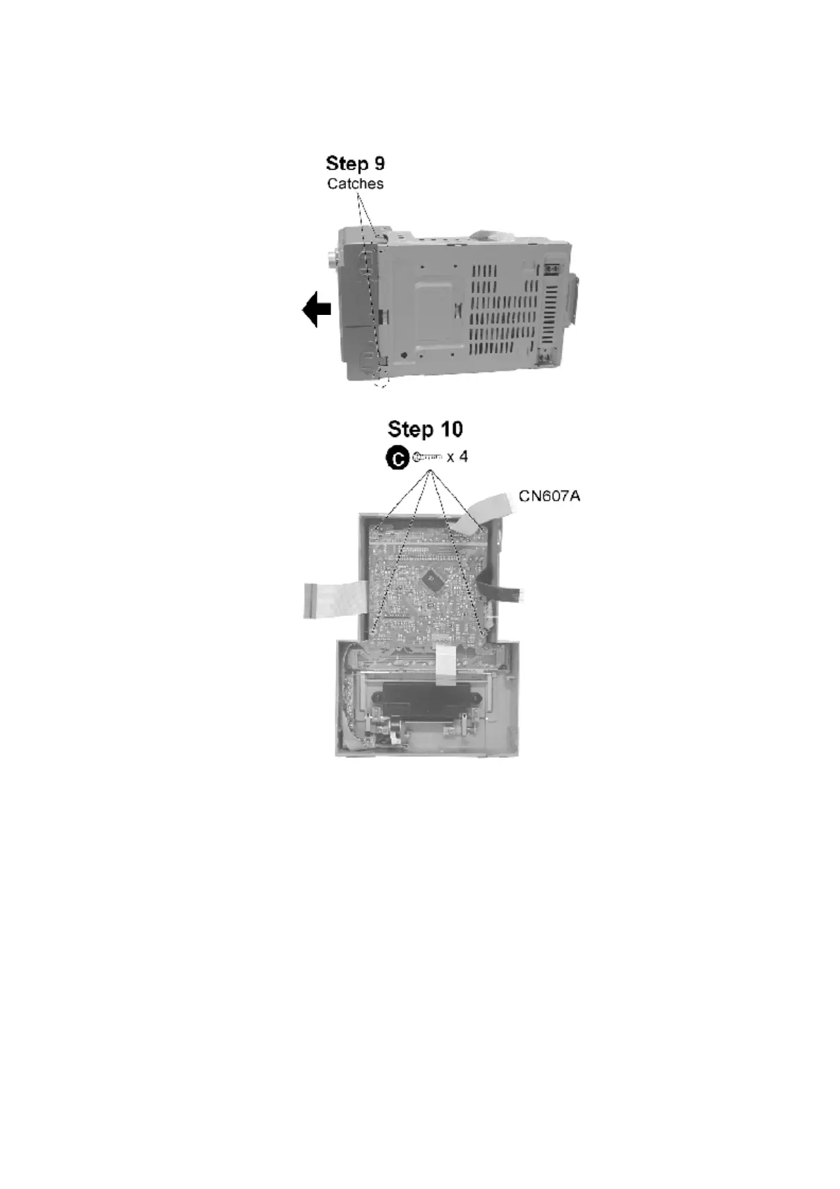 Step 9 Release the catches and pull out the front panel as the arrow shown.