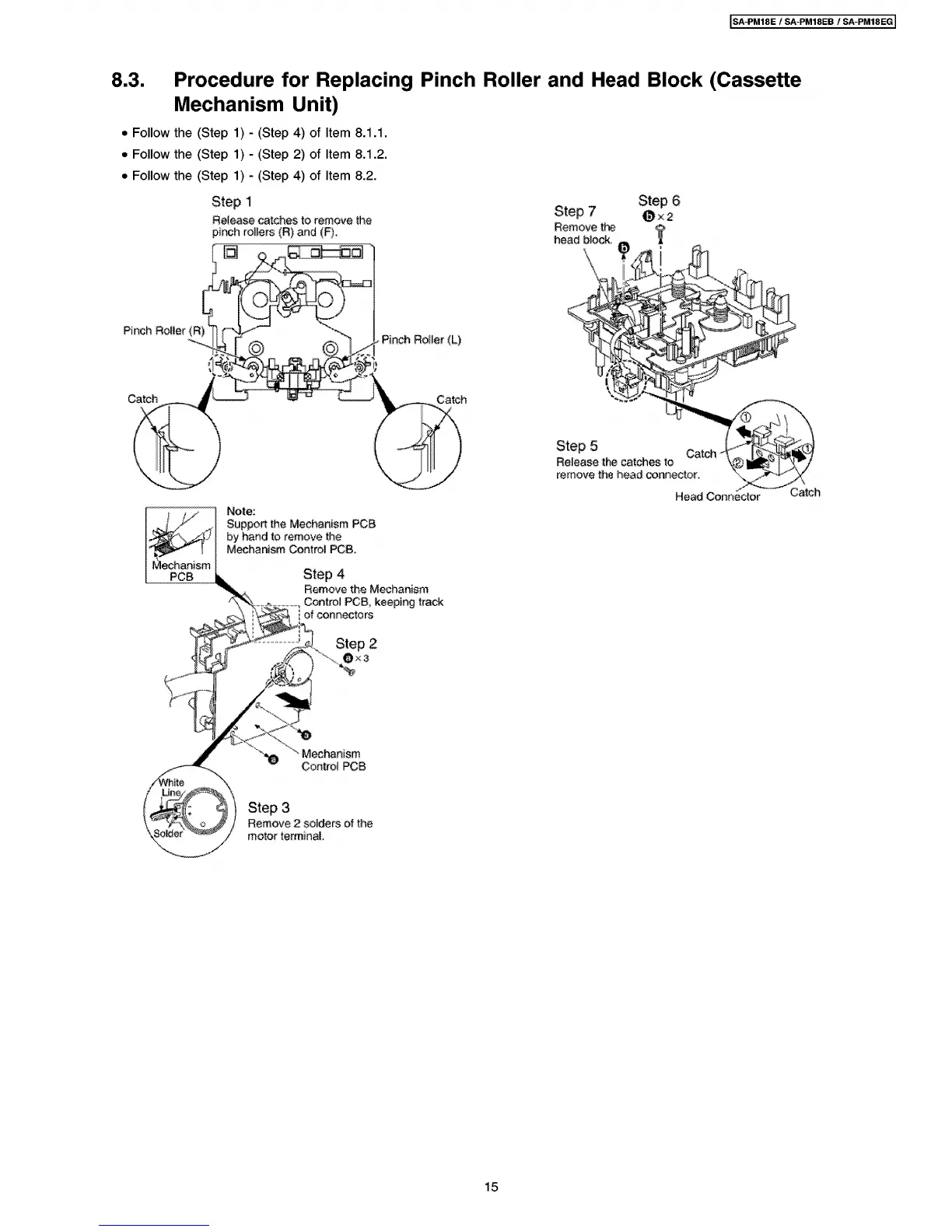 Panasonic SA-PM18E - Procedure for Replacing Pinch Roller and Head Block