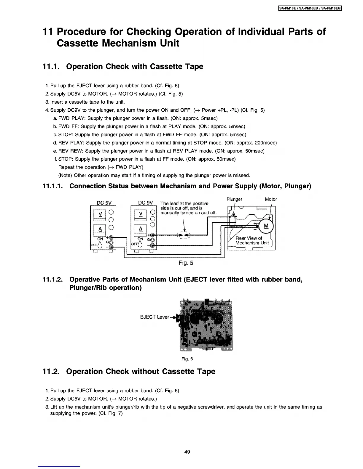 Panasonic SA-PM18E - Operation Check with Cassette Tape; Operation Check Without Cassette Tape