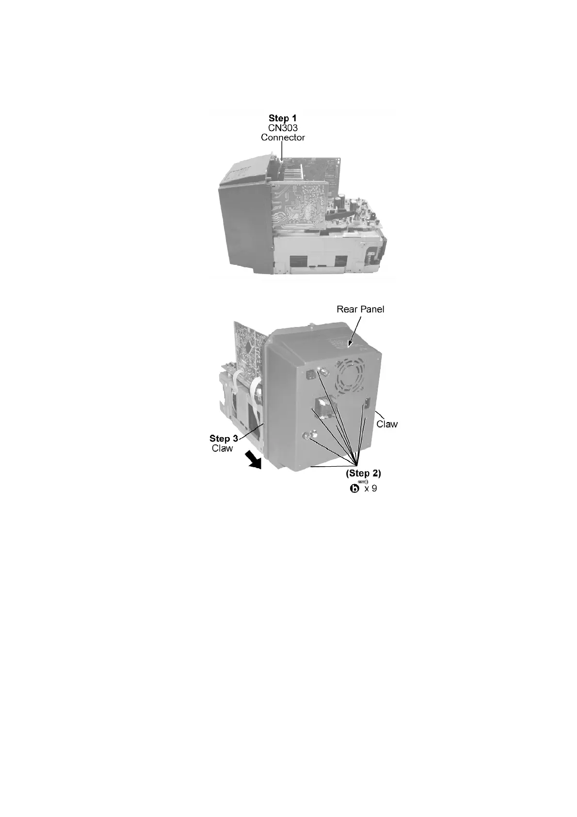 Step 3 : Release the Claws and remove Rear Panel as arrows shown.