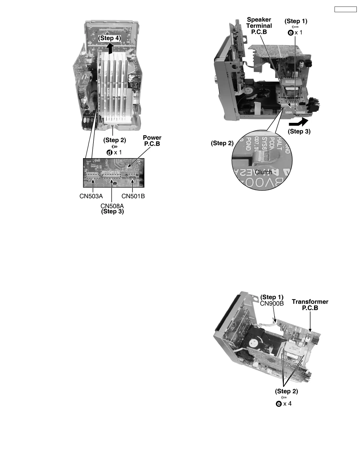 Step 3 : Detach the connector CN503A, CN508A, CN501B.