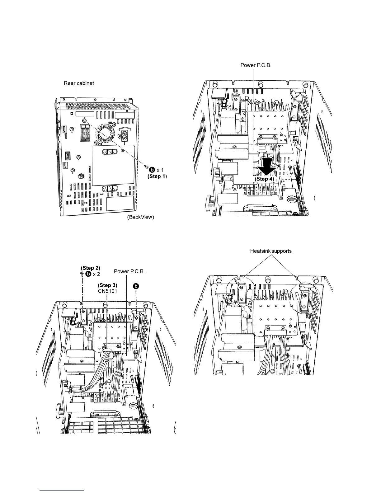 Caution : Handle the heatsink unit and P.C.B. with caution