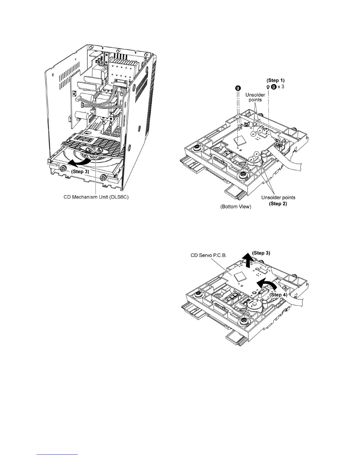• Refer to “Disassembly of CD Mechanism Unit (DLS6C)”.