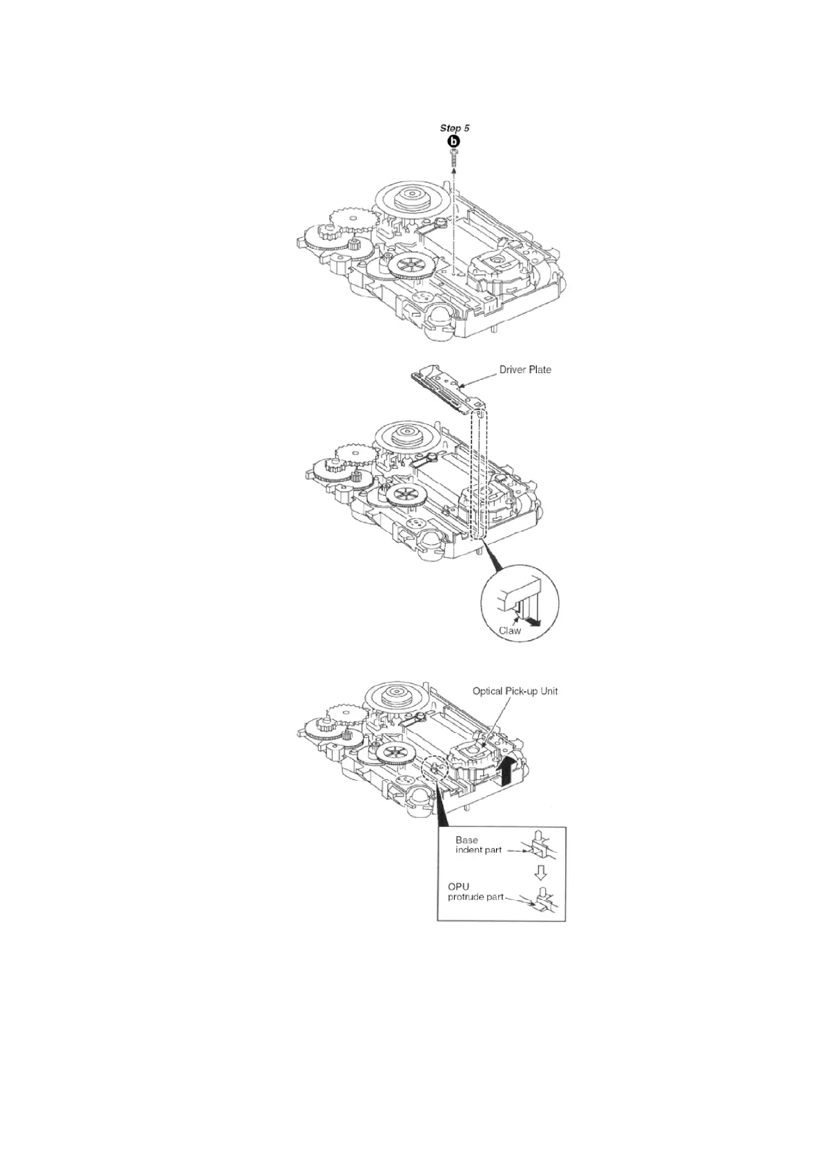 Step 7 Slide out the Optical Pick-up Unit from the indent opening.