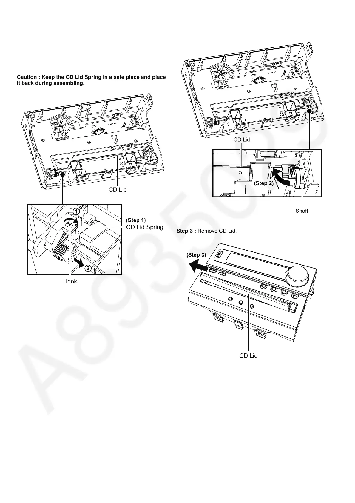 Caution : Keep the CD Lid Spring in a safe place and place