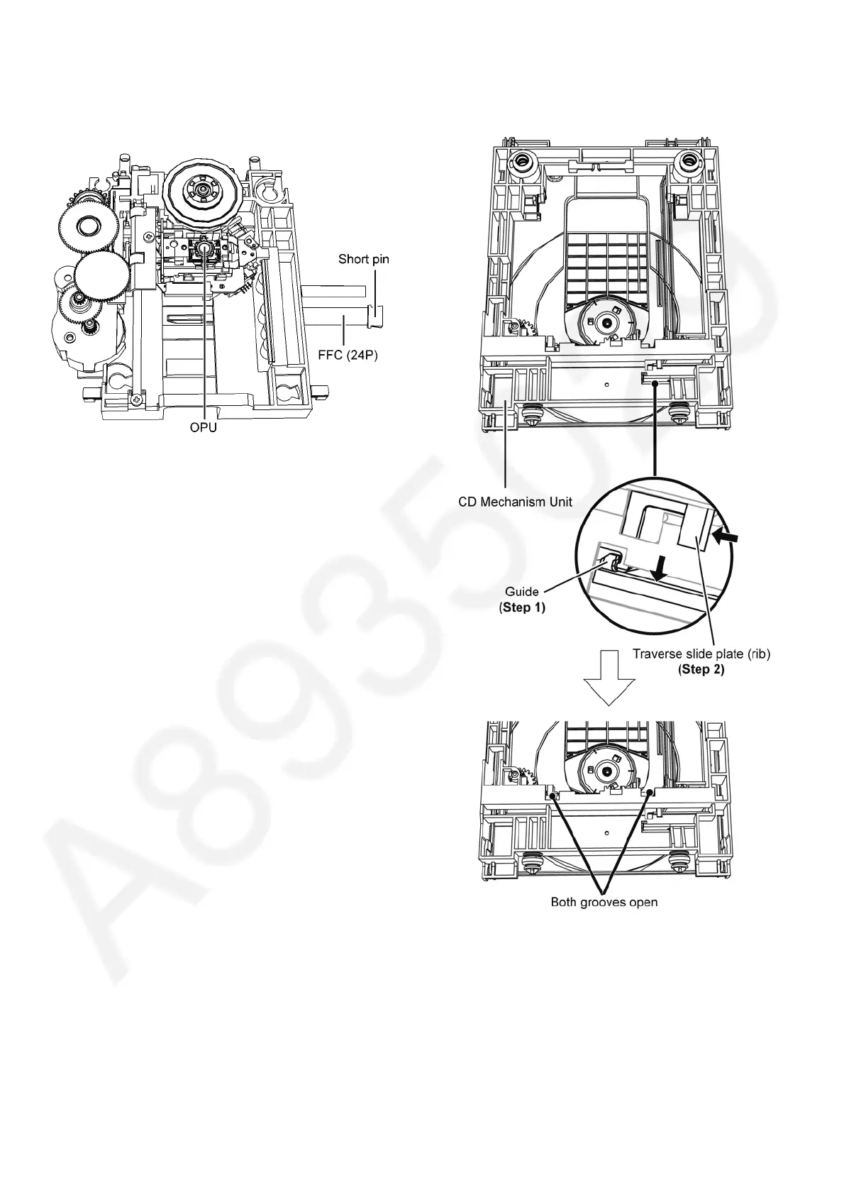 Step 2 : Push the traverse slide plate (rib), ensure both grooves