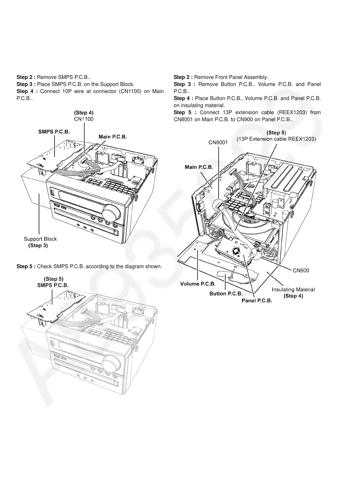Step 5 : Check SMPS P.C.B. according to the diagram shown.