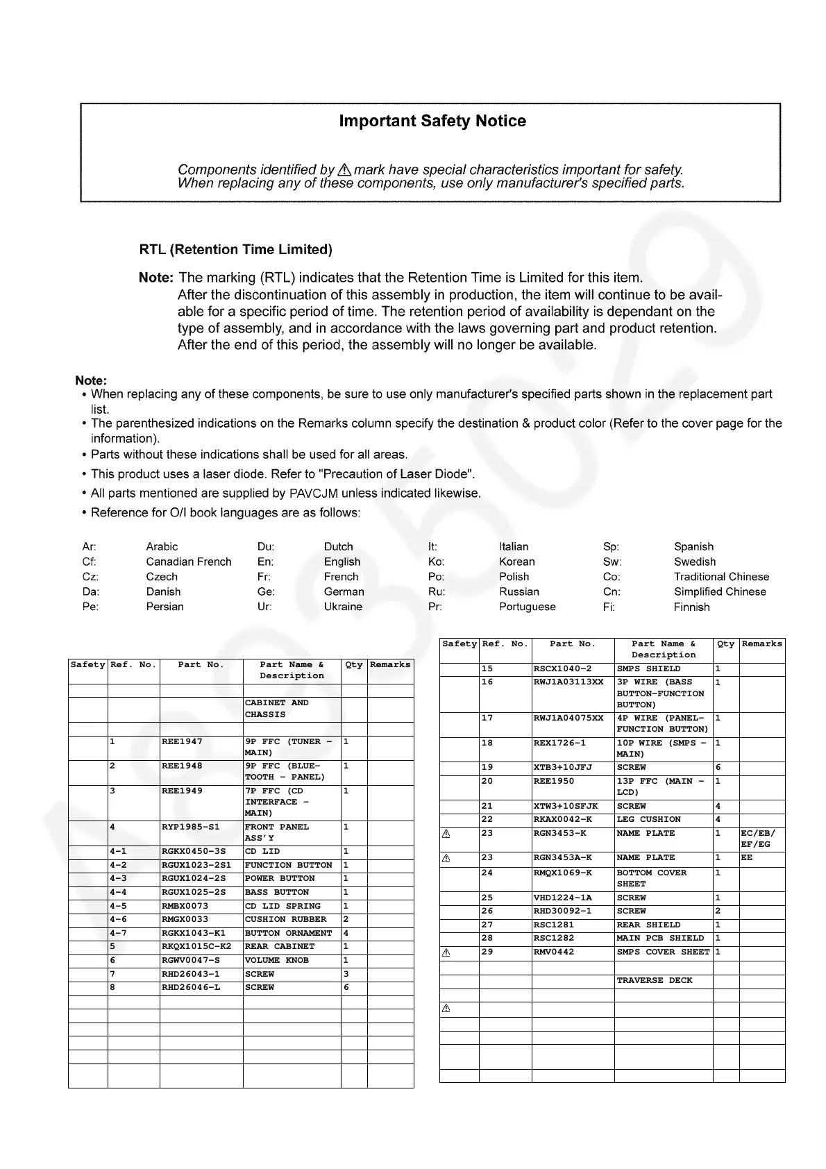Safety Ref. No. Part No. Part Name &