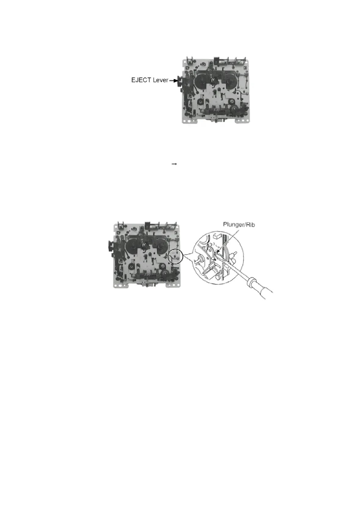 3. Lift up the mechanism unit’s plunger/rib with the tip of a negative