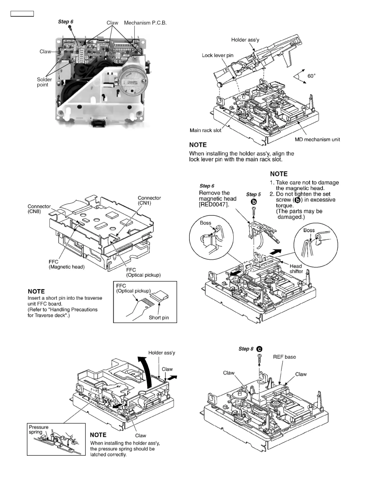 Step 4 Set the holder ass’y and MD mechanism unit at a 60