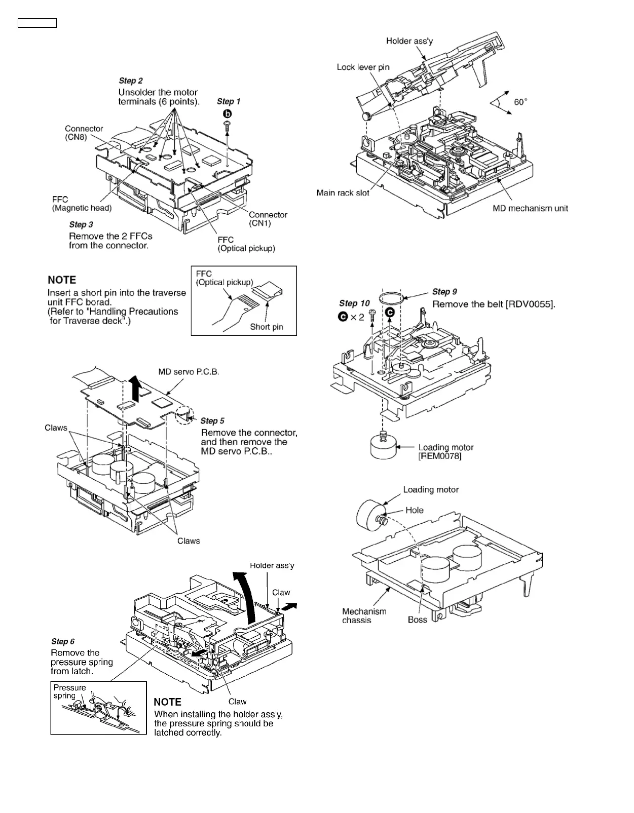 Set the holder ass’y and MD mechanism unit at a 60