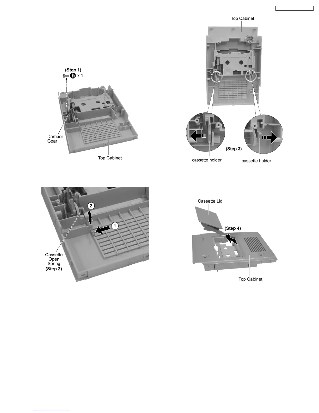 Step 2 : Remove the cassette open spring as arrows shown in