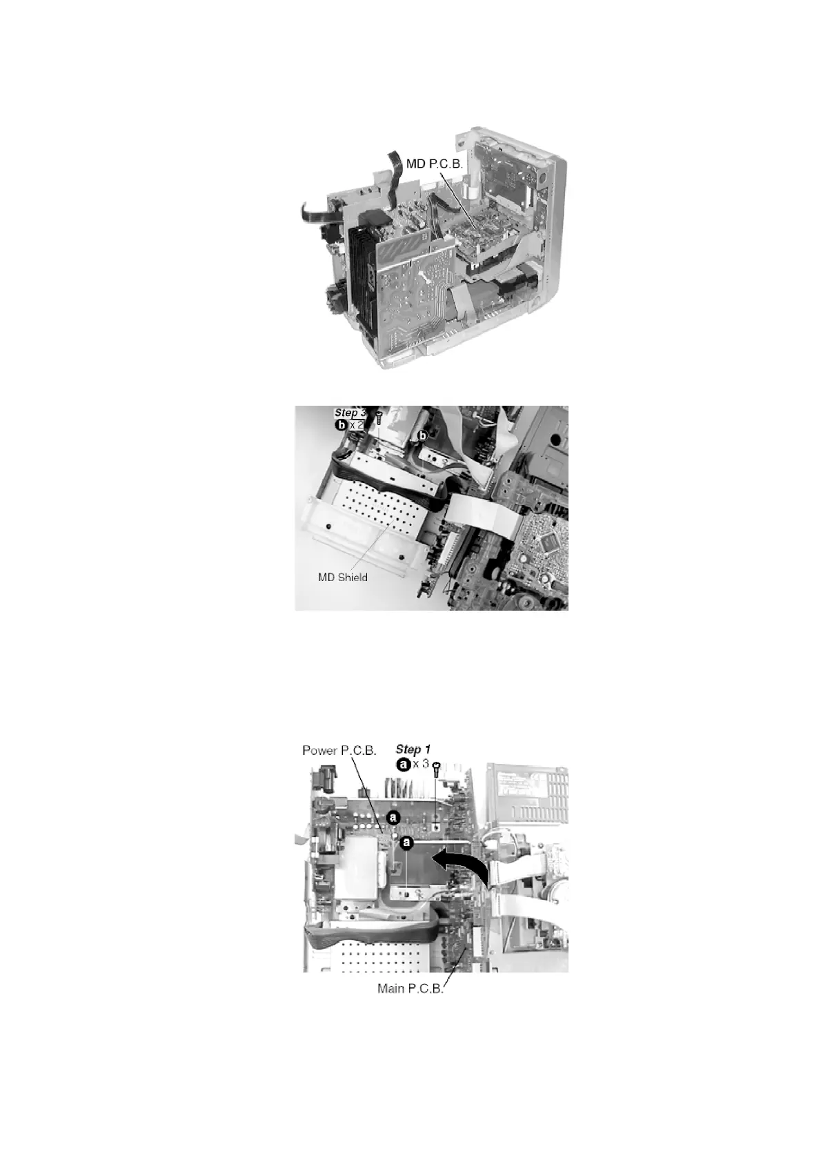 Step 2 Lift up the Main P.C.B. together with the Power P.C.B. and rotate left then place the