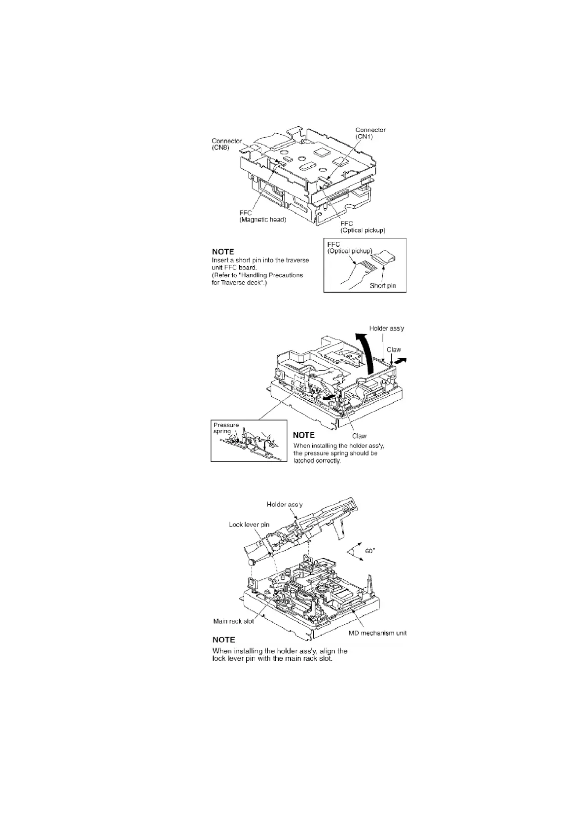 Step 4 Set the holder ass’y and MD mechanism unit at a 60 degree angle and then pull out the