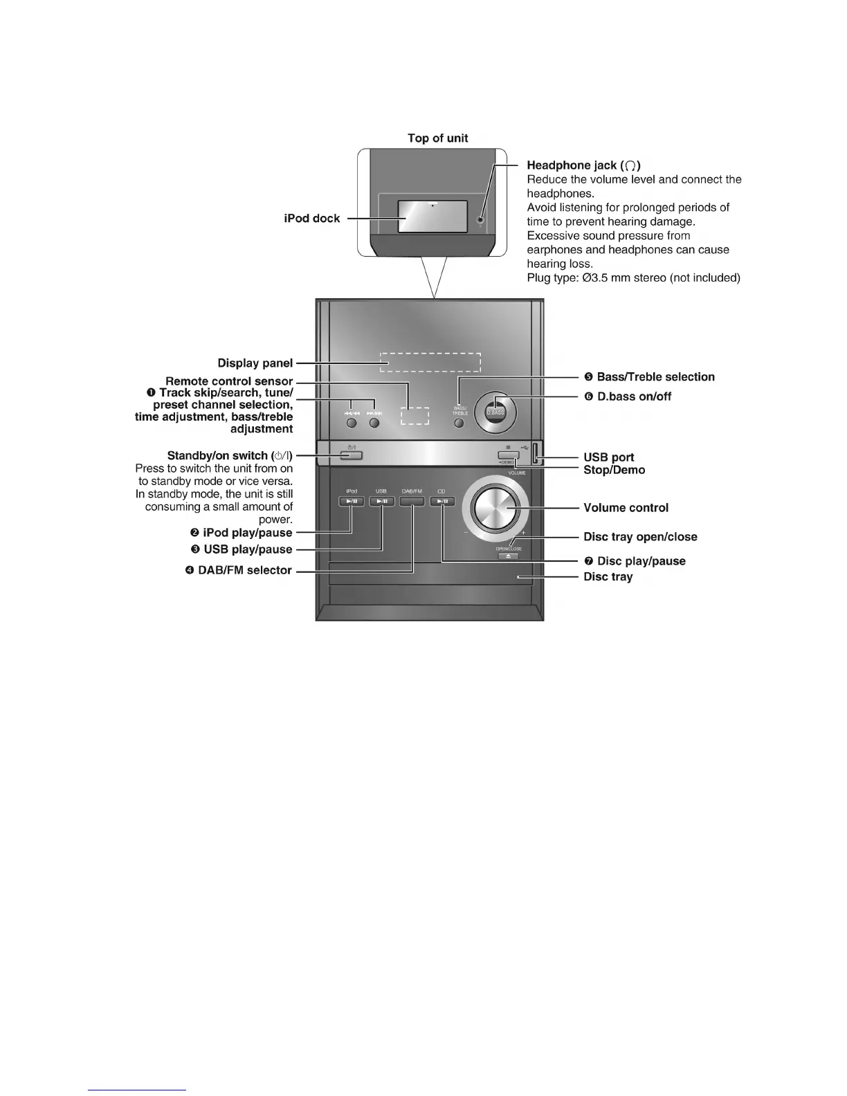 Panasonic SA-PM38DBEB - Controls and Components Location; Main Unit Controls and Operations