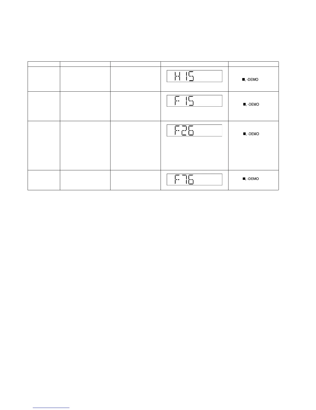 Error Code Diagnosis Contents Description of error Automatic FL Display Remarks