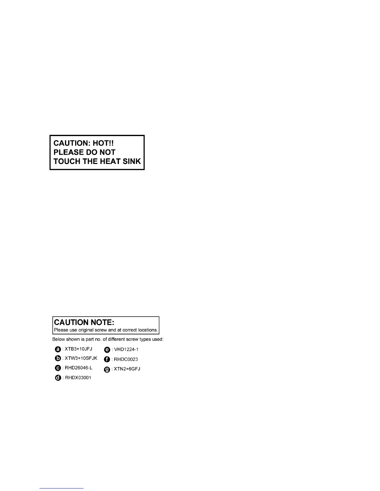 6. Use caution when removing the top cabinet and avoid touching heat sinks located in the unit.