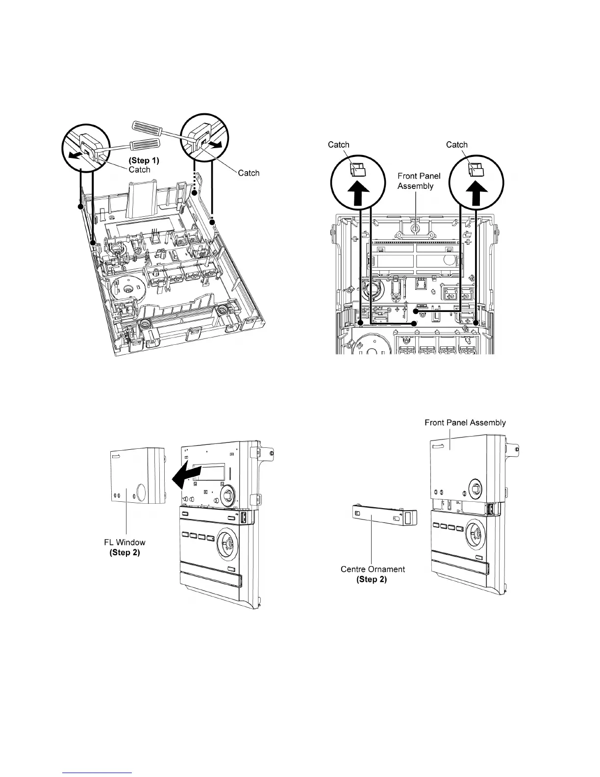 catches to avoid damage to the Front Panel Assembly & FL