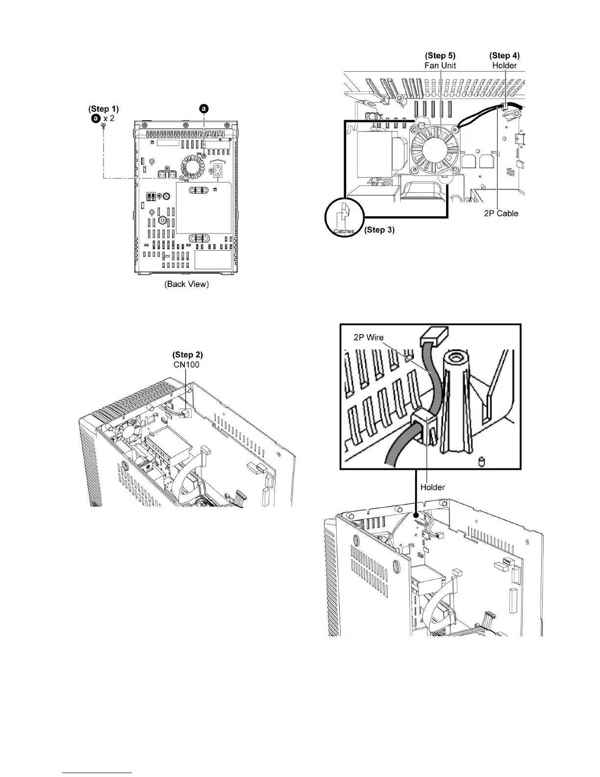 Step 2 : Detach 2P cable at connector (CN100) on Main P.C.B..