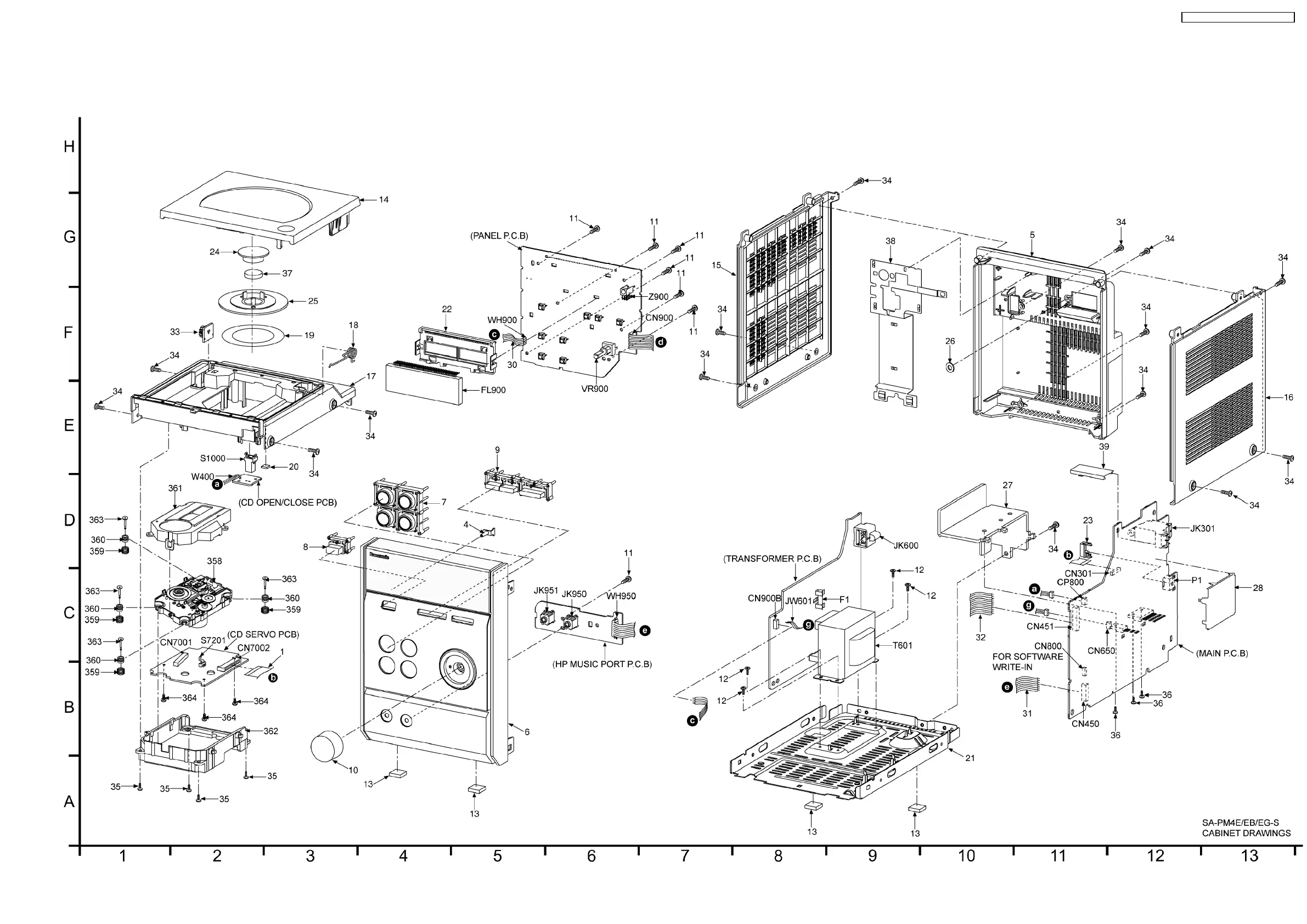 Panasonic SA-PM4E - 19 Exploded Views; Cabinet Parts Location & Traverse Part Location