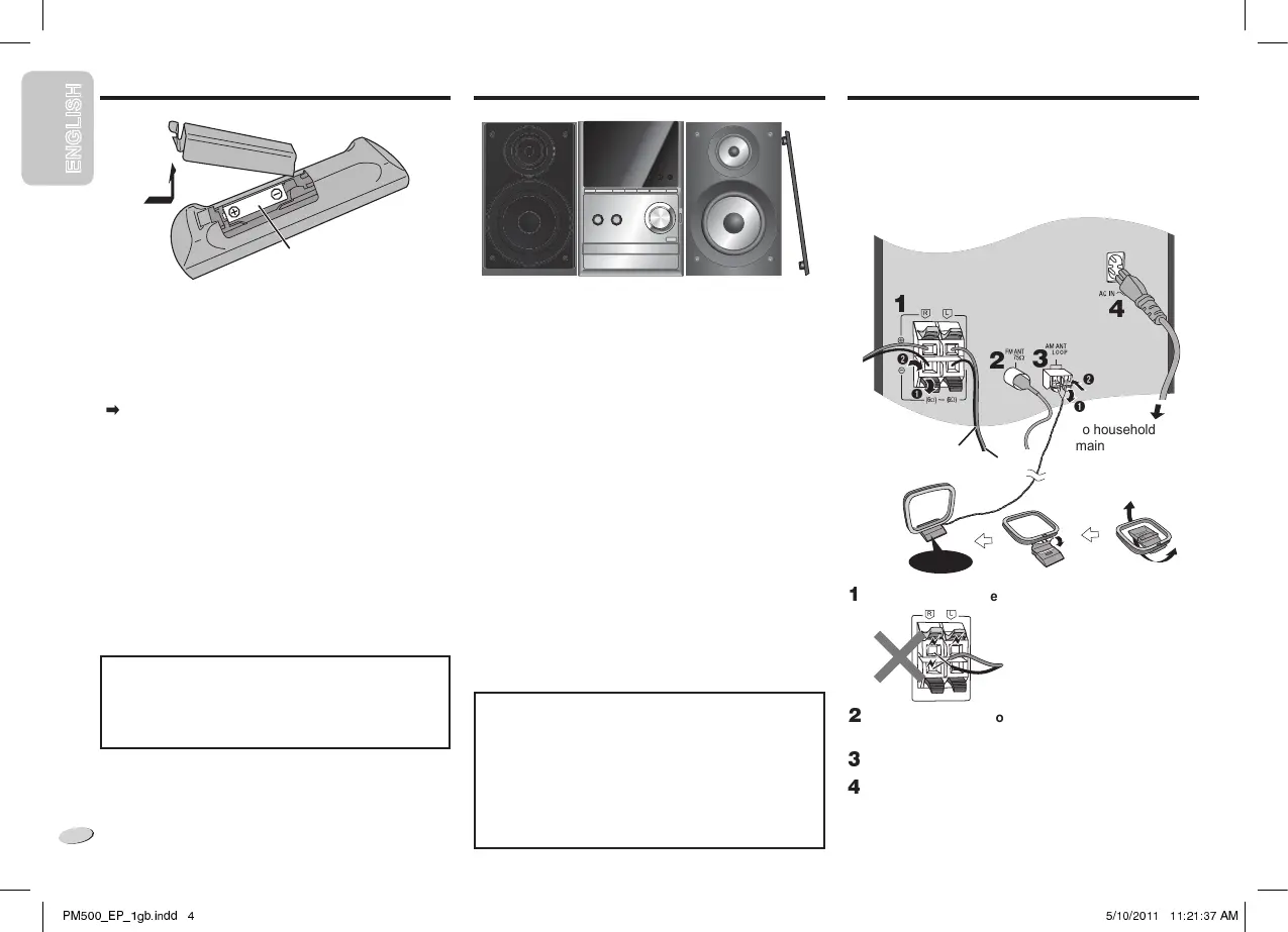 • Remove the battery if you do not use the remote control