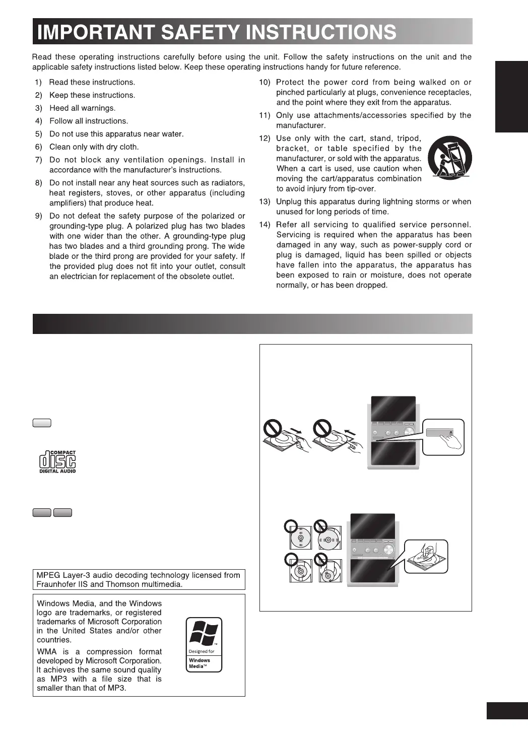 • This unit can play MP3 or WMA fi les and CD-DA format audio