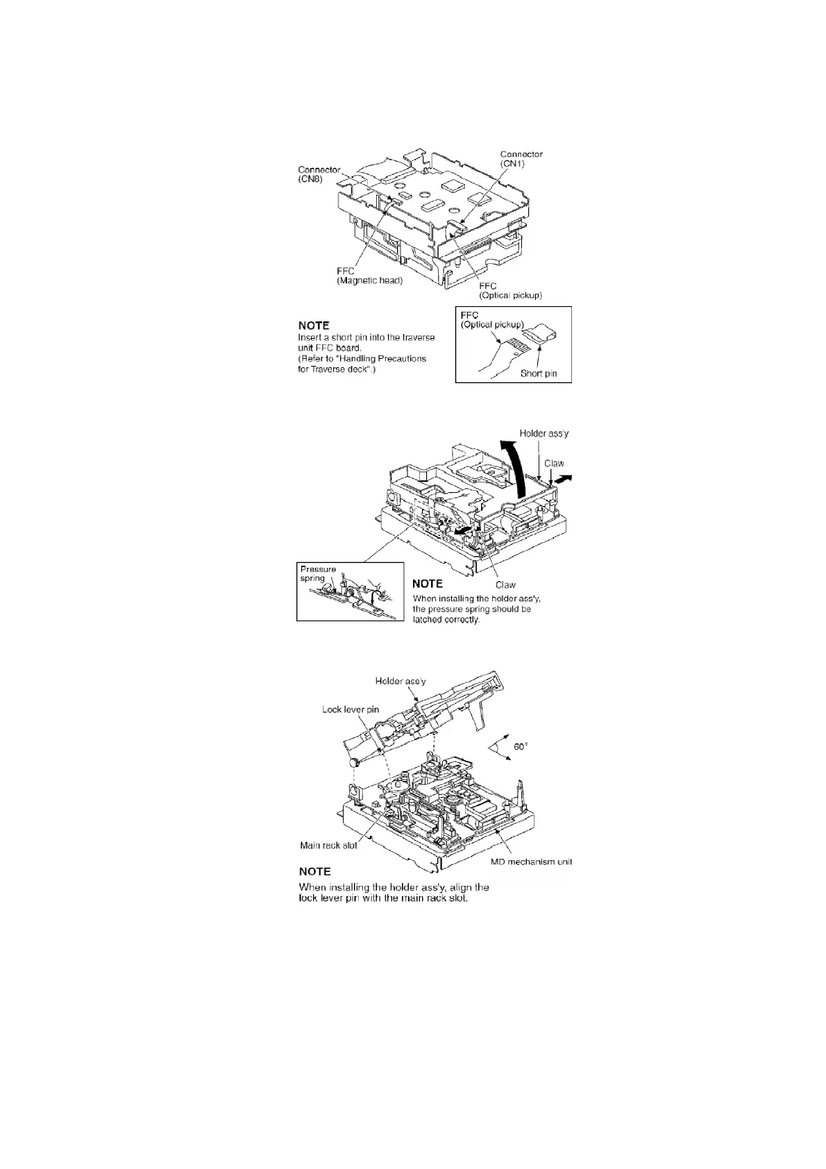 Step 4 Set the holder ass’y and MD mechanism unit at a 60 degree angle and then pull out the