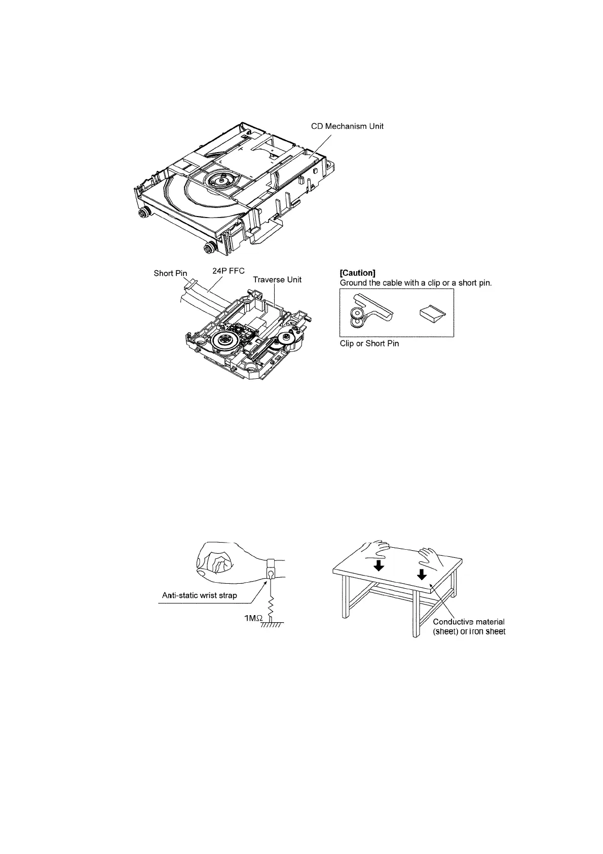 1. Put a conductive material (sheet) or iron sheet on the area where the optical pickup is placed, and ground the sheet.