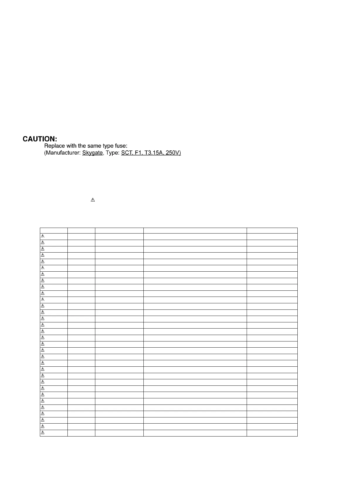 critical parts should be replaced with manufacturer’s specified parts to prevent shock, fire or other hazards. Do not modify the