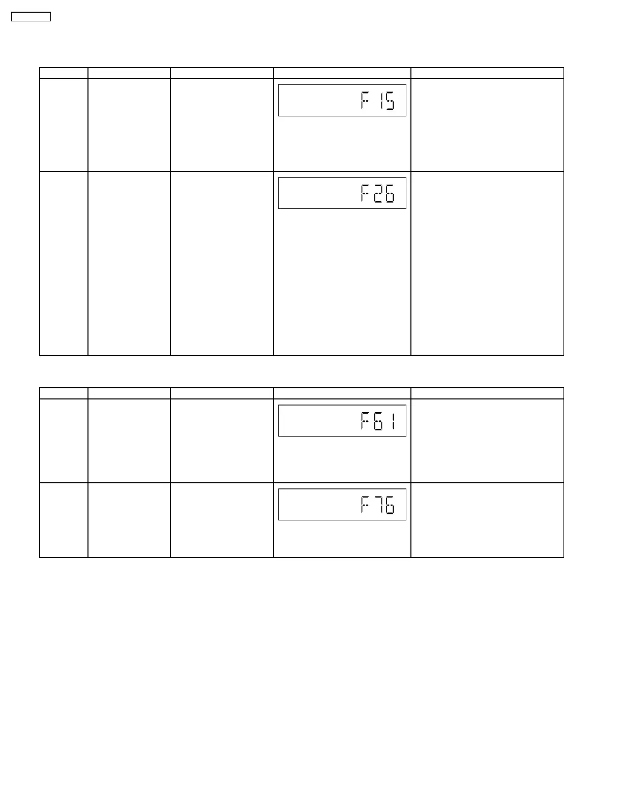 Error Code Diagnosis Contents Description of error Automatic FL Display Remarks