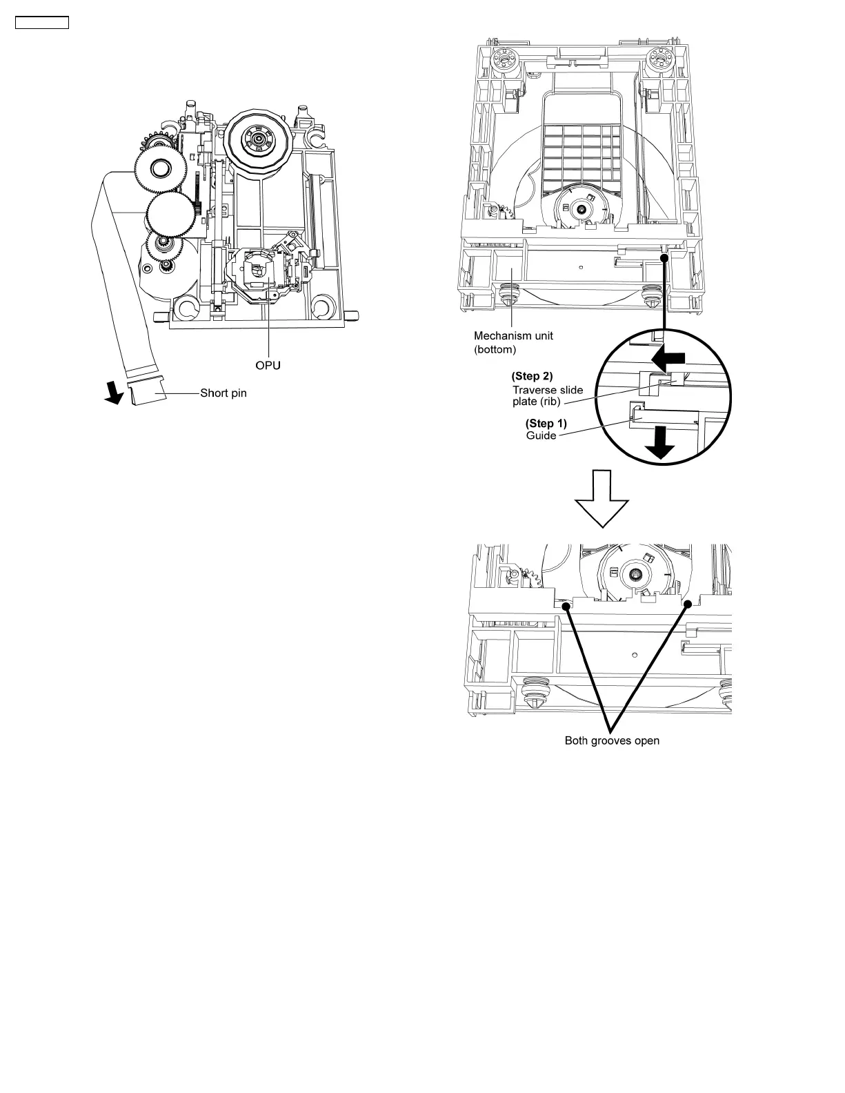 Step 2: Push the traverse slide plate (rib), ensure both grooves