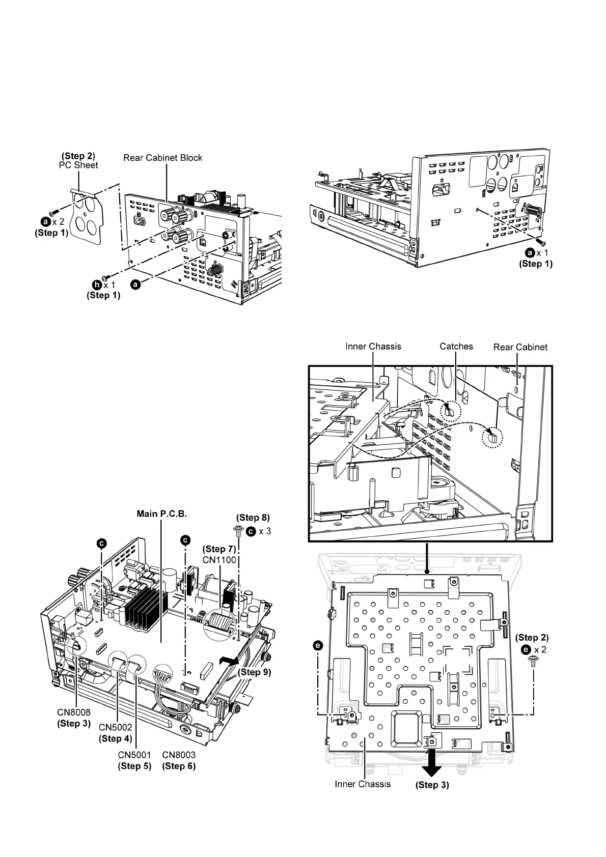 Step 6 : Detach 9P wire at connector (CN8003) on Main P.C.B..