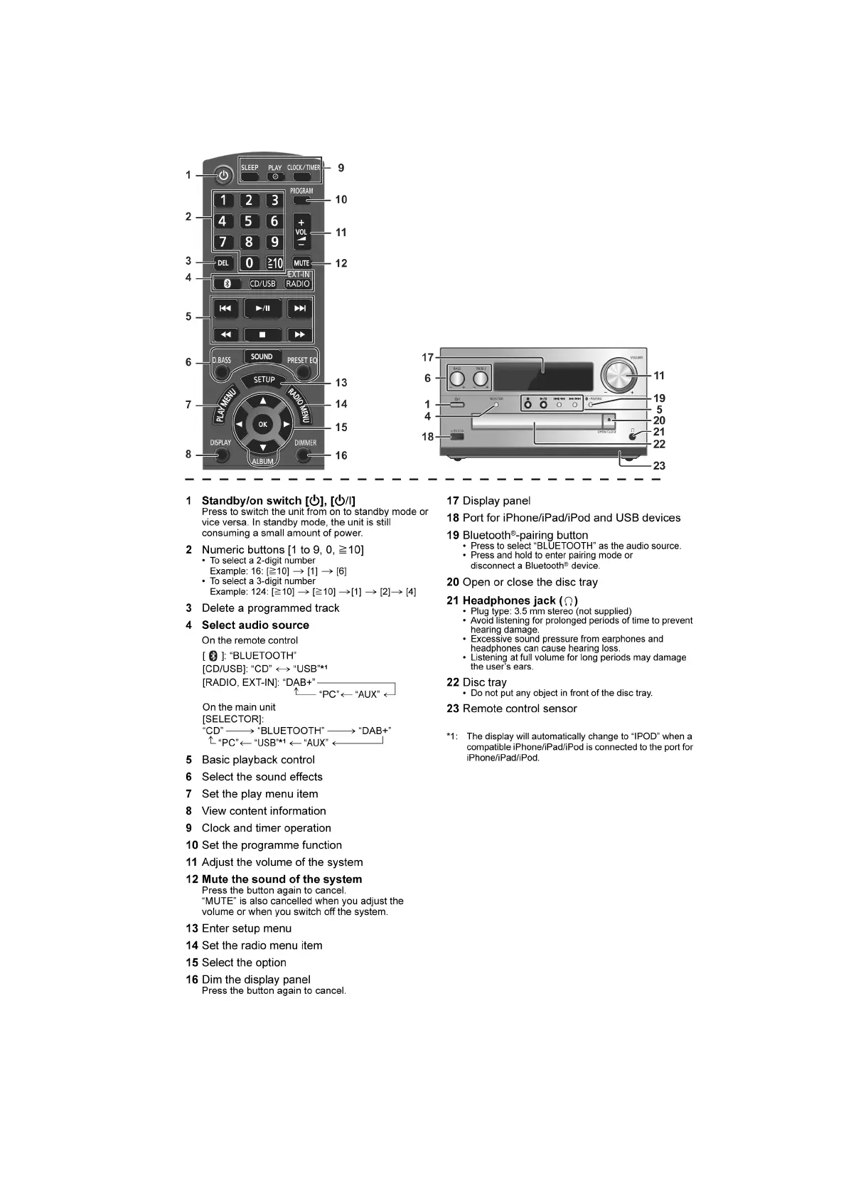 Panasonic SA-PMX84EG - Location of Controls and Components; Operations