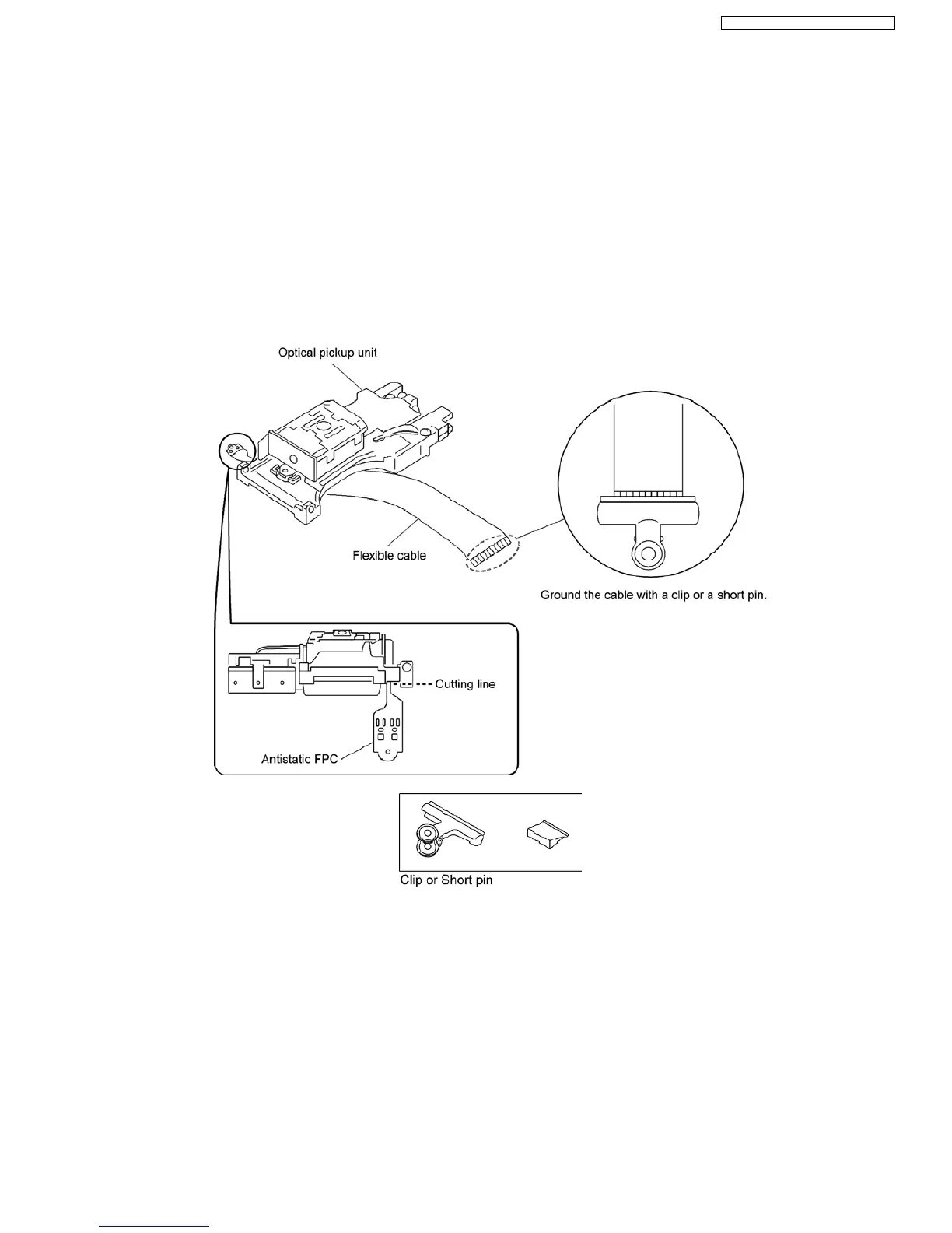 2. To prevent the laser diode from the electrostatic discharge damage, the flexible cable of the optical pickup unit removed should